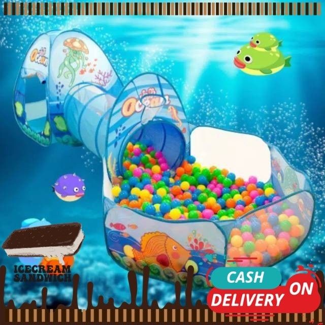 ICS Mainan Tenda Anak Terowongan 4 in 1 + Kolam + Basket Mainan Keranjang Mandi Bola Anak