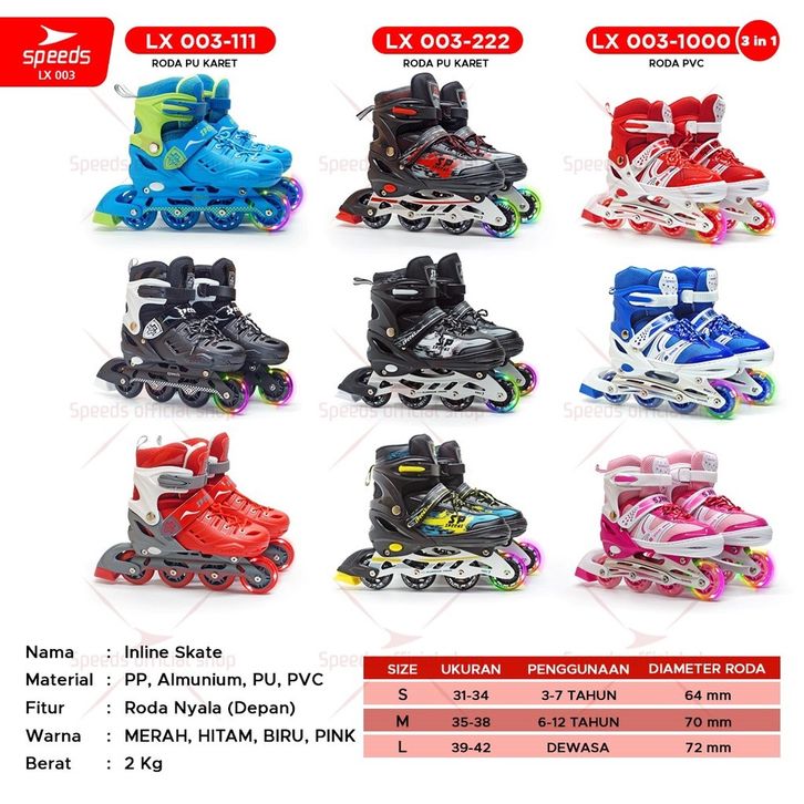 SPEEDS Sepatu Roda Anak dan Dewasa InSkate Full Karet PU Roda Nyala 1 Warna Random 3-222