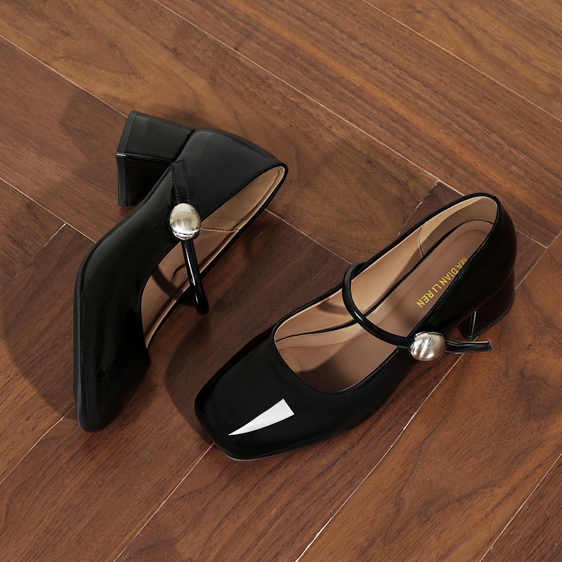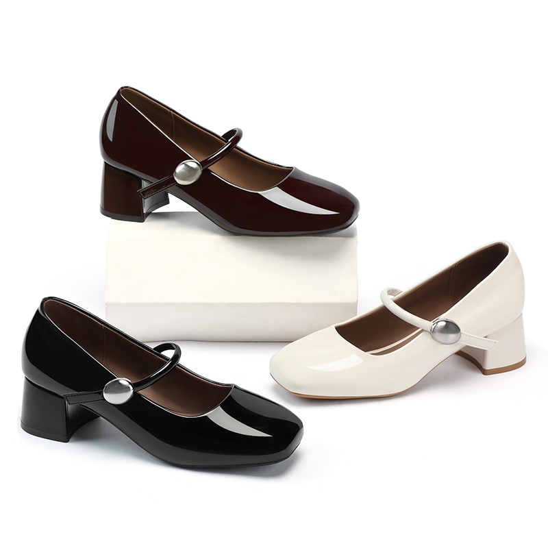 Ikunka Sepatu Mary Janes Wanita Sepatu Wanita Hak Chunky Heels Sepatu Kerja Wanita Tinggi Hak 4Cm