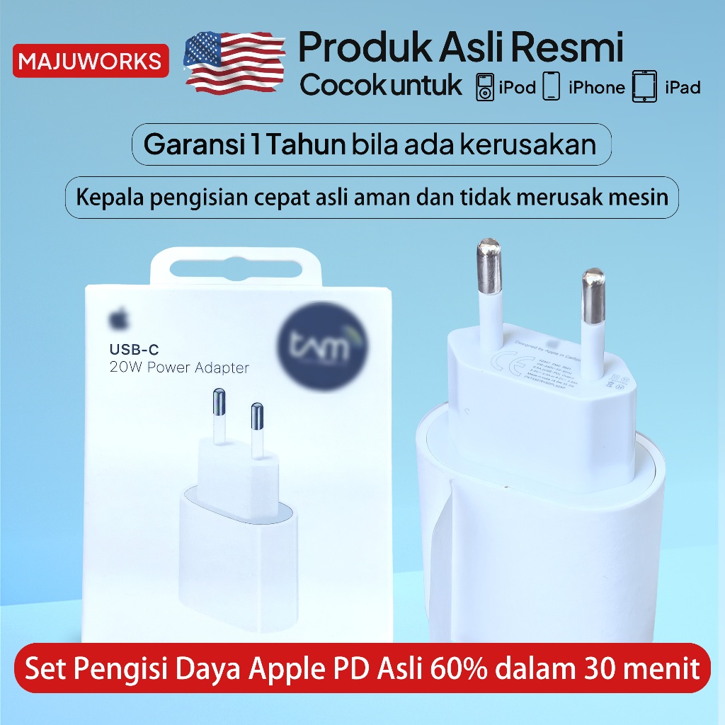 MAJUWORKS - Adaptor Charger Apple Iphone 20W 35 watt 16/15/14pro/12/13/X/XR/11/xsmax/8 ori 100 PERSEN Charging