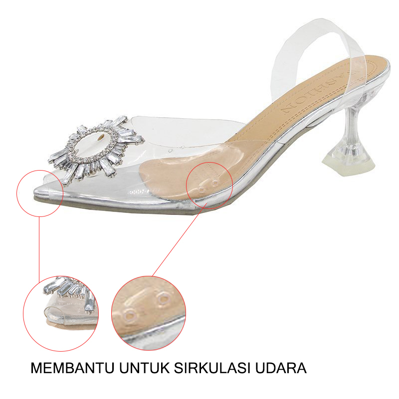 Hak Tinggi Cewek Formal Kaca Transparan Sepatu High Heels Wanita Spatu Heels Kerja Perempuan Sh-009