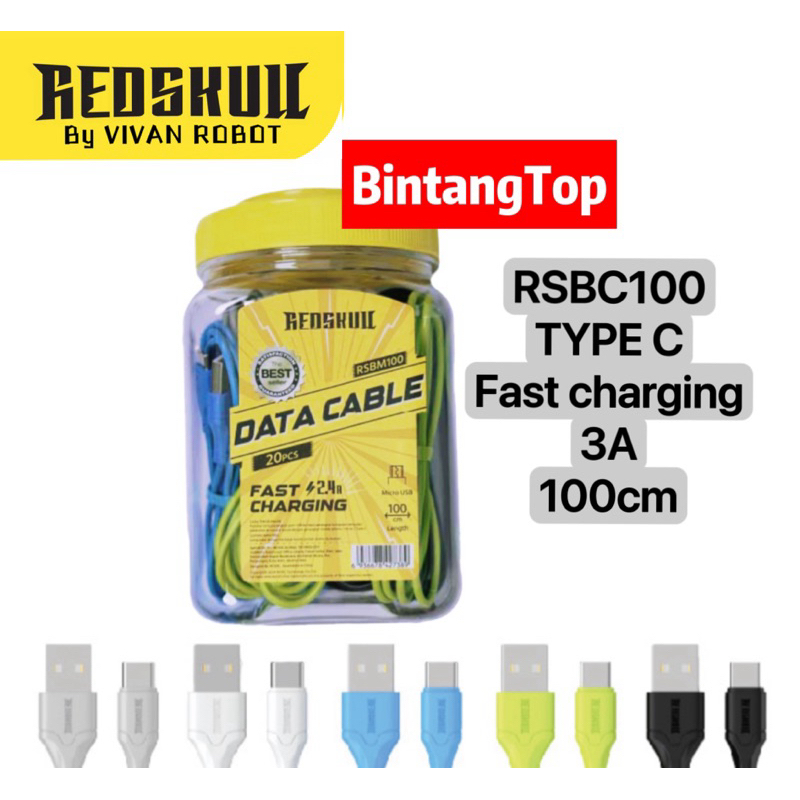 REDSKULL RSBM100 , RSBC100 (1 toples isi 20) / kabel data redskull RSBM100 MICRO USB 2.4A , RSBC100 TYPE C 3A fast charging panjang 100cm GARANSI RESMI 1tahun (1 toples isi 20)
