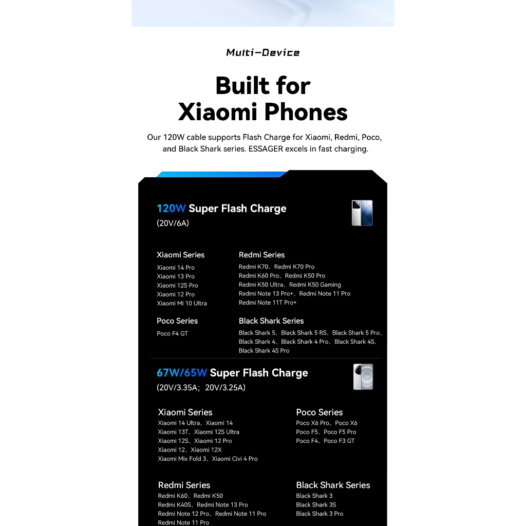 ESSAGER 120W Kabel Data Type C Fast Charging 6A Usb A To Type C Original Untuk Xiaomi Poco