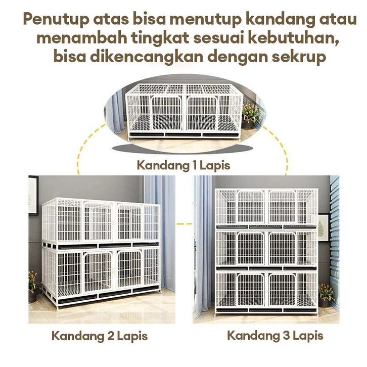 Kandang Kucing Tiga Sekat dengan Kotak Pasir Partisi Kandang Pembiakan Kucing Praktis dan Luas