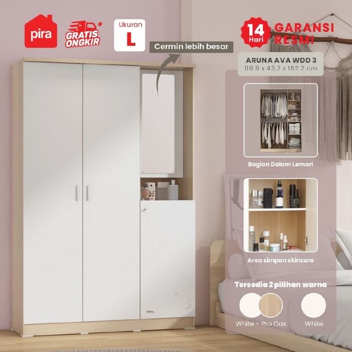 Pira Metropolis OX - ARUNA AVA WDD 3 Lemari Pakaian 3 Pintu dengan Kaca Rias
