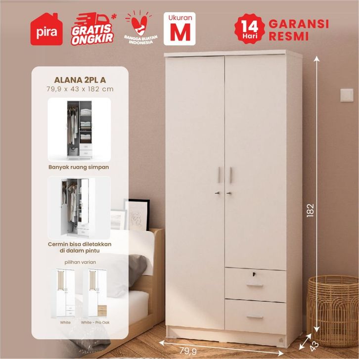 Pira Metropolis - Alana 2PL Lemari Pakaian 2 Pintu