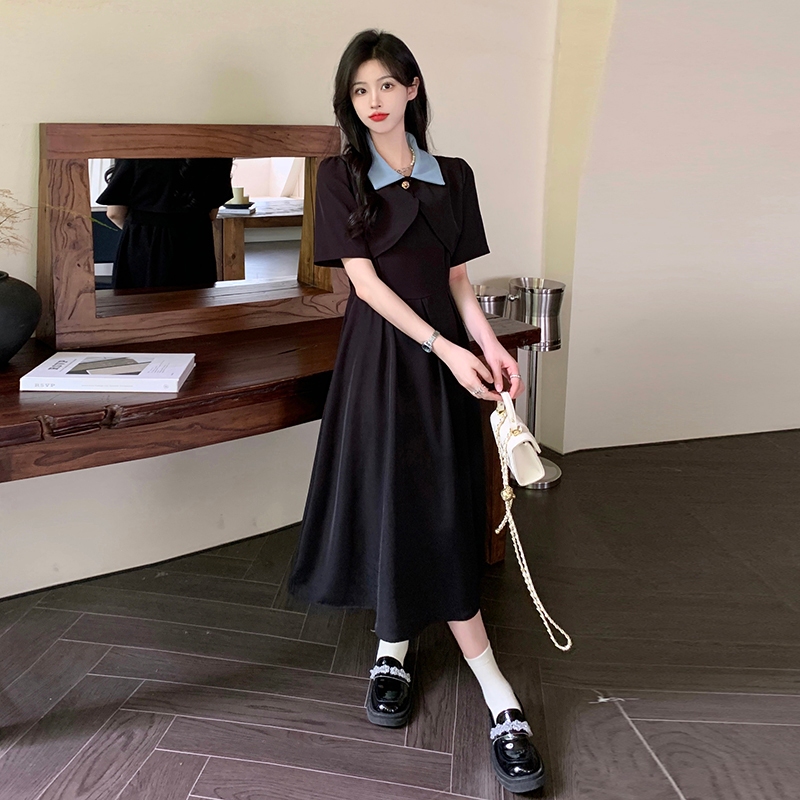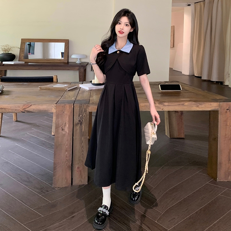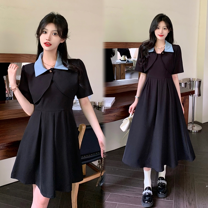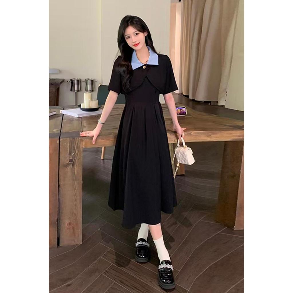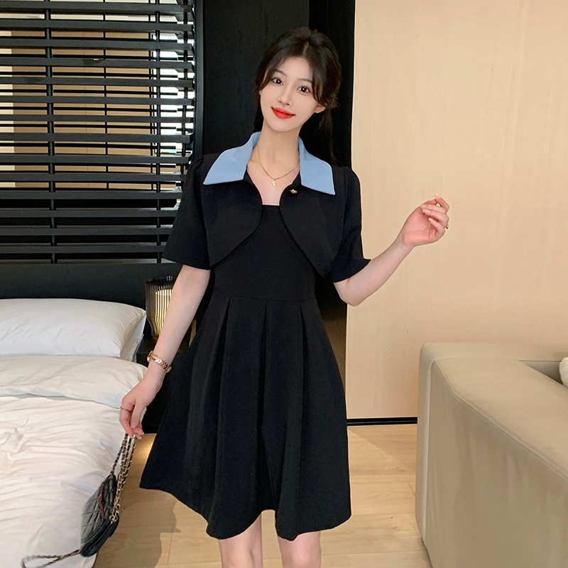 Rok Tanpa Lengan Gaun Jas Prancis Hitam Dan Rok Kerah Lapel Atasan Dress Pendek Wanita Midi Dress Korea Dress Lengan Pen