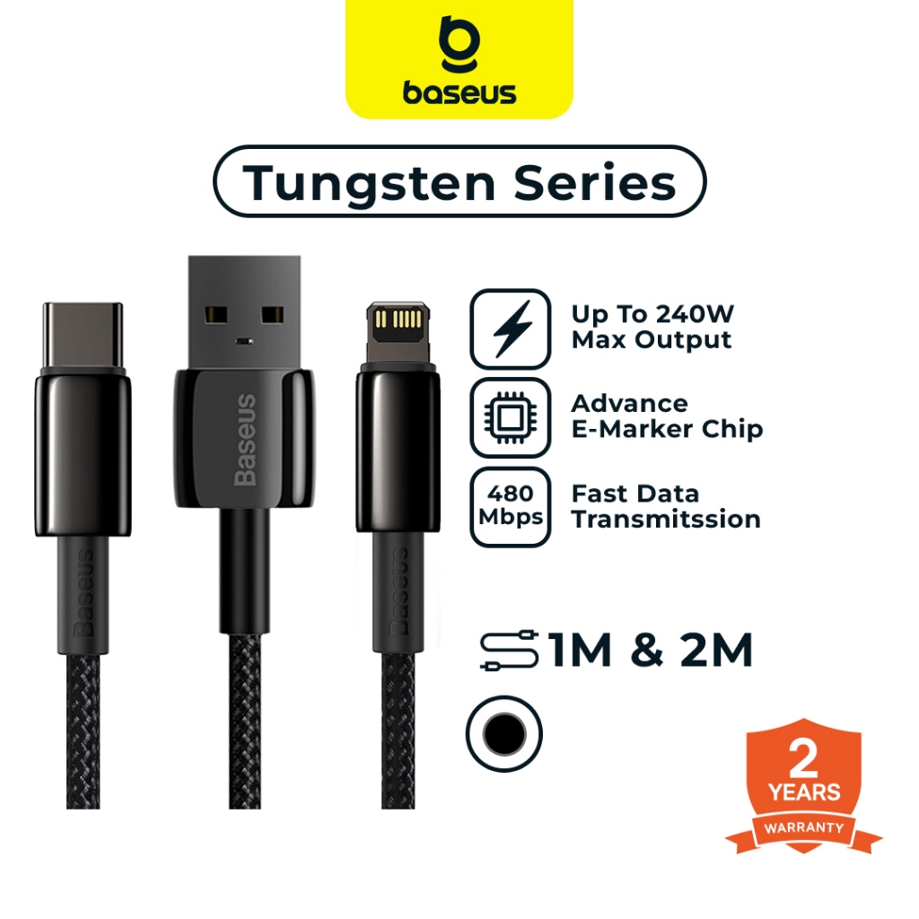 Baseus Kabel Data Tungsten Zinc Alloy + Braided Fast Charging PD Up to 100W Type-C to Lighning / iphone PD 20W, USB to C, C to C, USB to L Transmisi up to 480Mbps