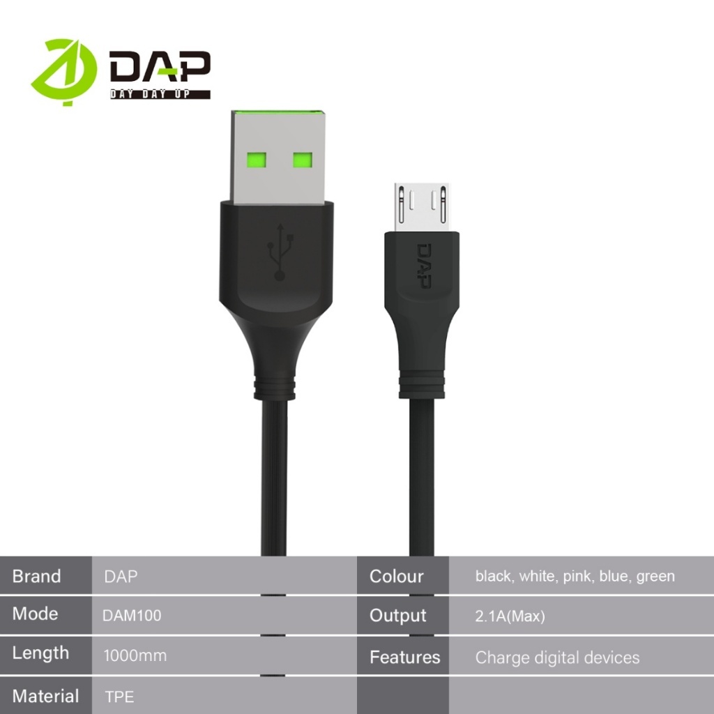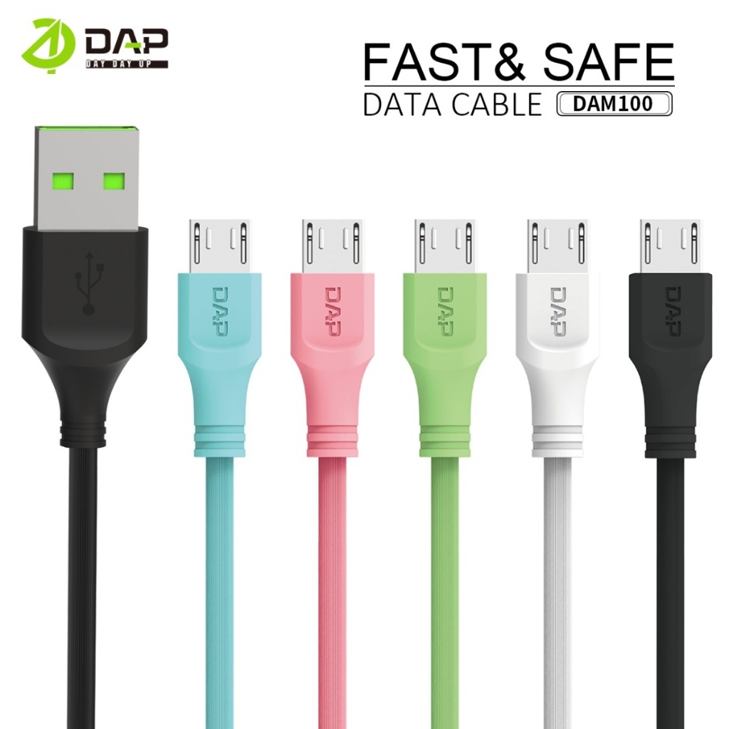 DAP DA Series Toples Kabel Data Micro, Type C & Lightning 2.4A Fast Charging 100cm Garansi Resmi 1 Tahun isi 25 Pcs