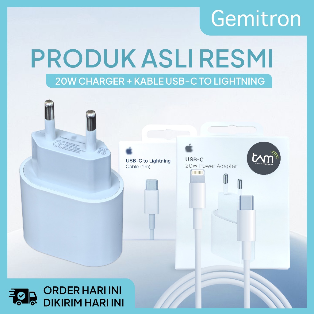 GEMITRON - ORIGINAL Adaptor Fast Charger iPhone Bergaransi PD 20W USB-C Power Adapter Charger Fast Charging Kabel Data Type-C iPhone
