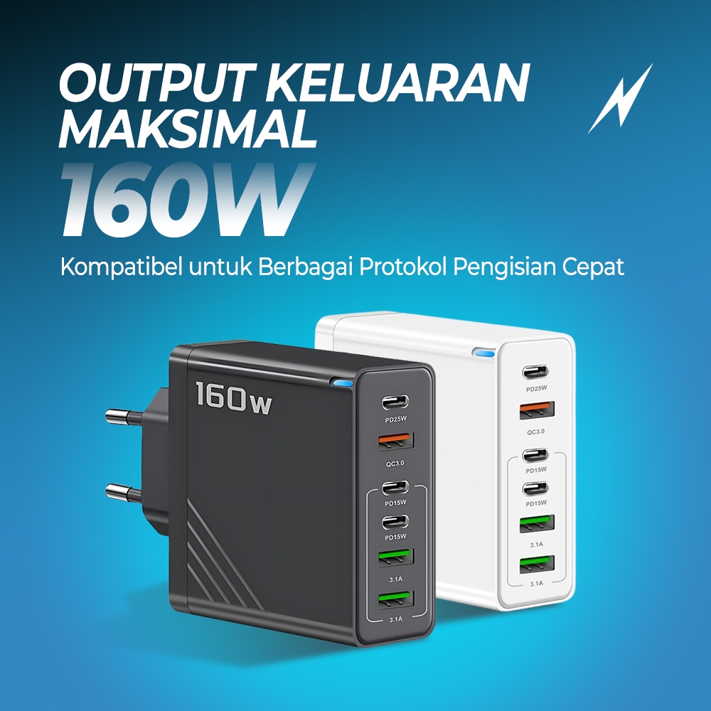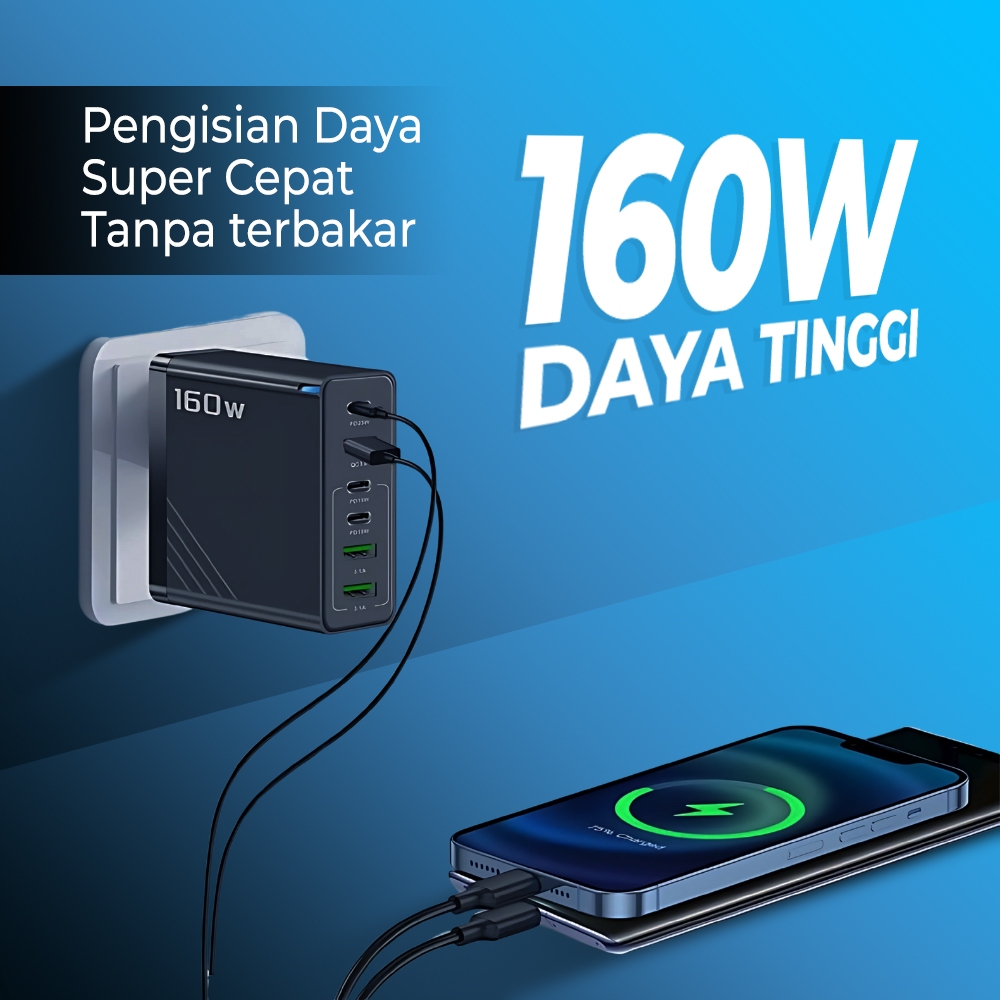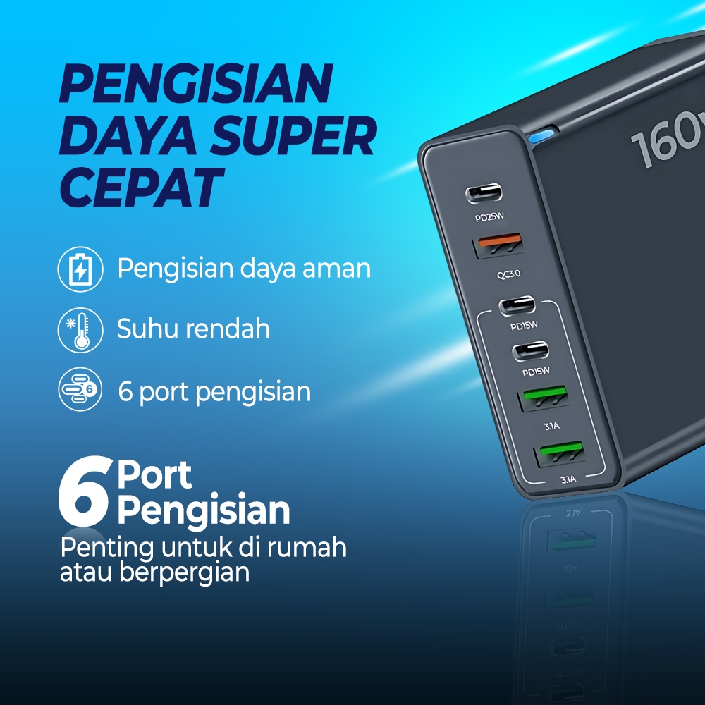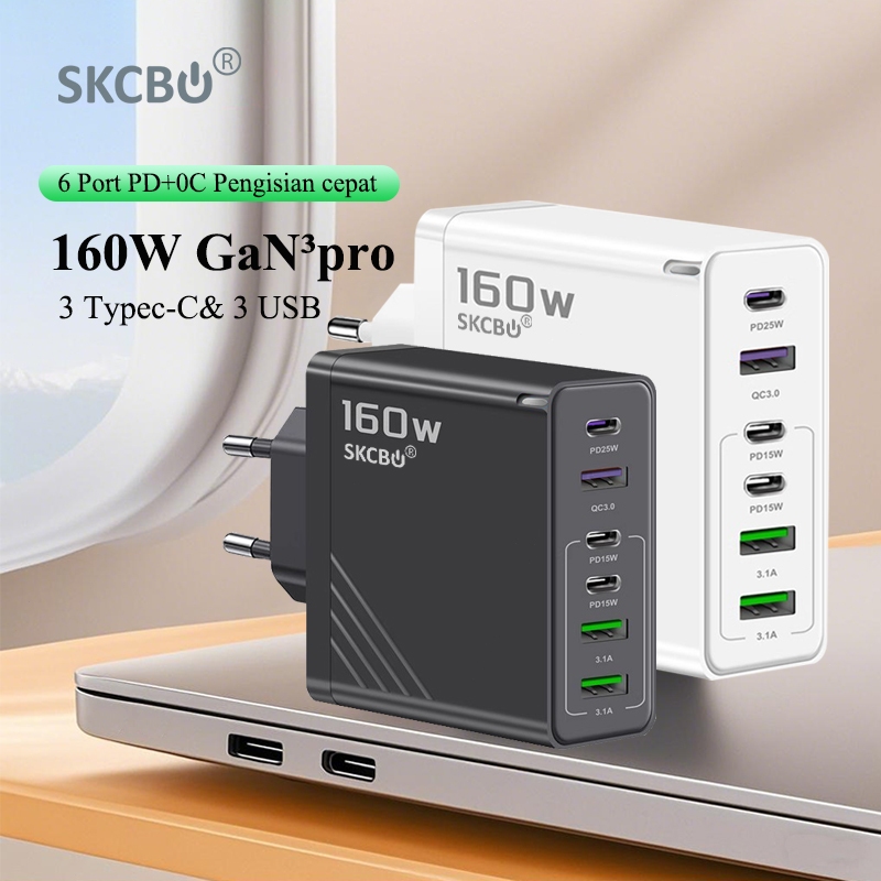 SKCBO 160W 6 in1 Kepala Charger iPhone Computer Laptop Fast Charging 3 USB + 3 Type C PD QC Adaptor Cas