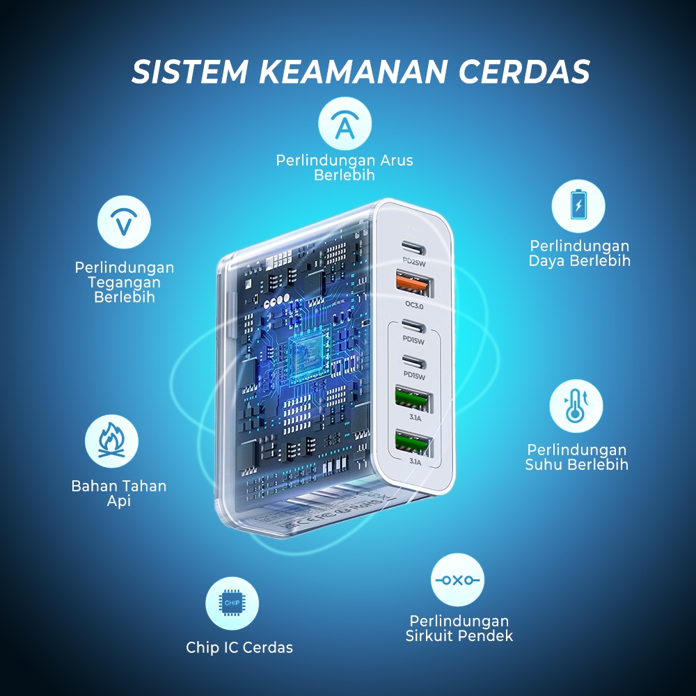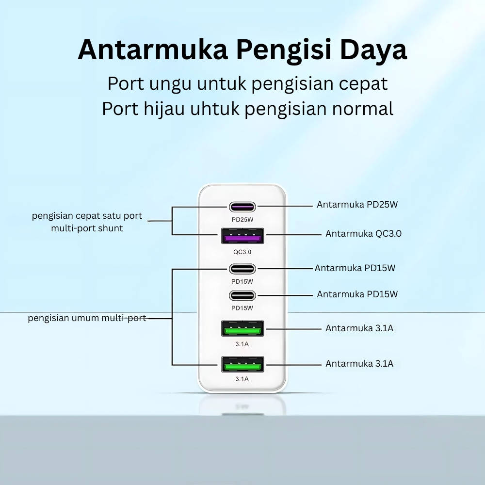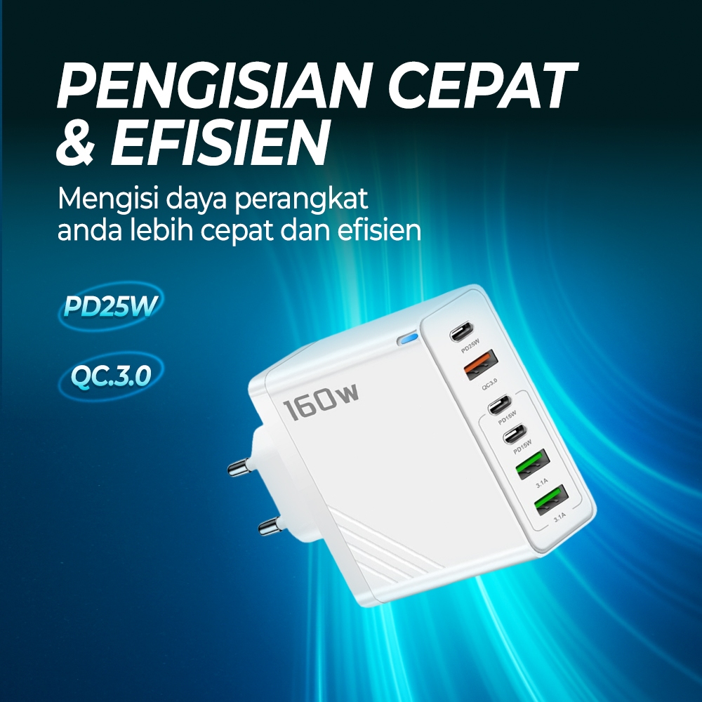 SKCBO 160W 6 in1 Kepala Charger iPhone Computer Laptop Fast Charging 3 USB + 3 Type C PD QC Adaptor Cas