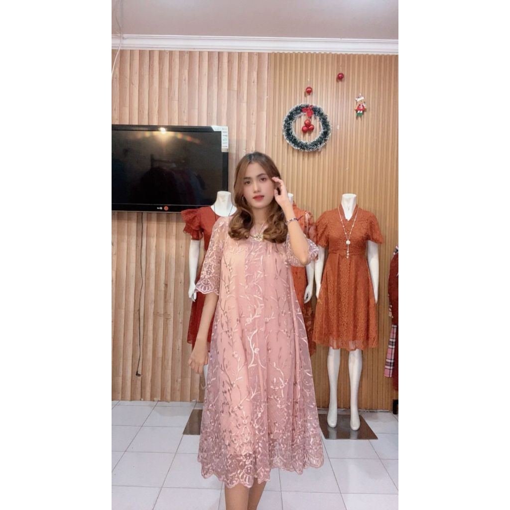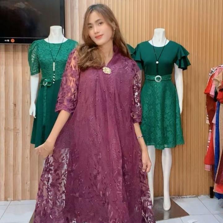 Kathryn Collection #Dres Burgendi Bahan Tile Bordir Mutiara