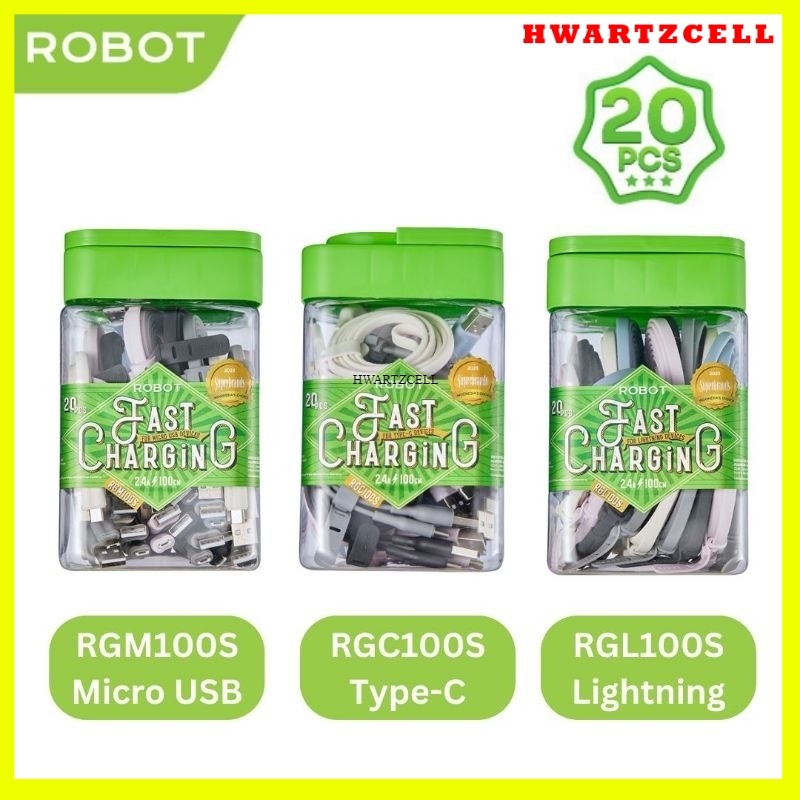 [HWARTZ Original Robot Kabel Data Micro USB, Type-C, Lightning RGM100S / RGC100S / RGL100S Toples isi 20