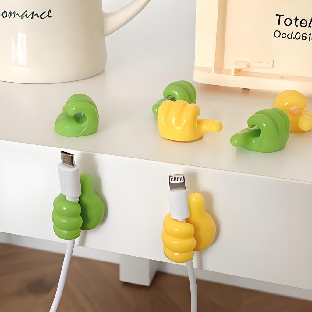 Data cable storage retainer charging cable thumb hook cable manager desktop tableside hub artifact