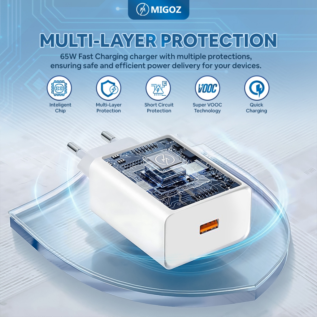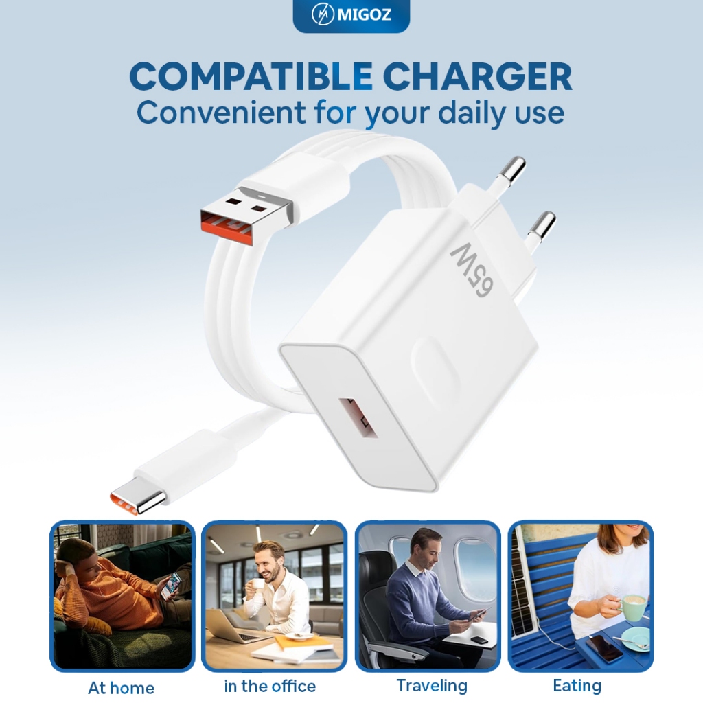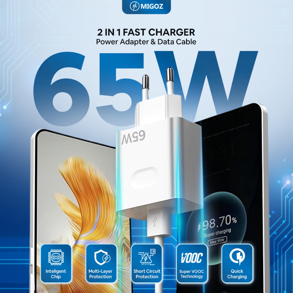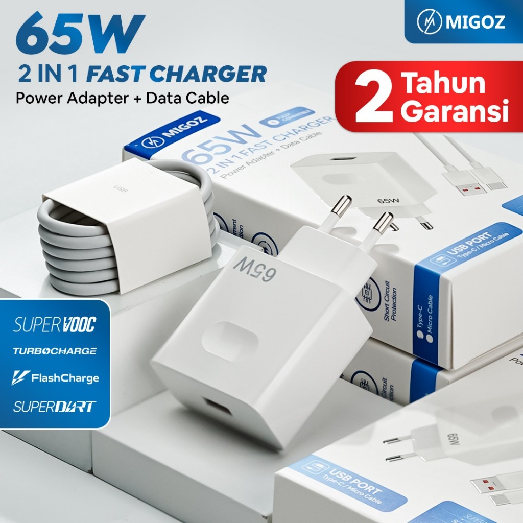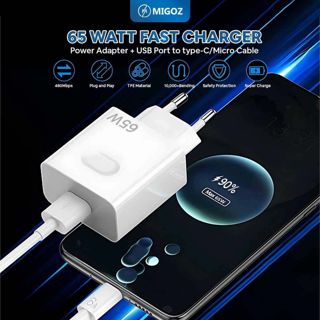 Migoz Charger 65W Fast Charging Micro USB & Type C Untuk Semua HP Android Support QC & SuperVooc
