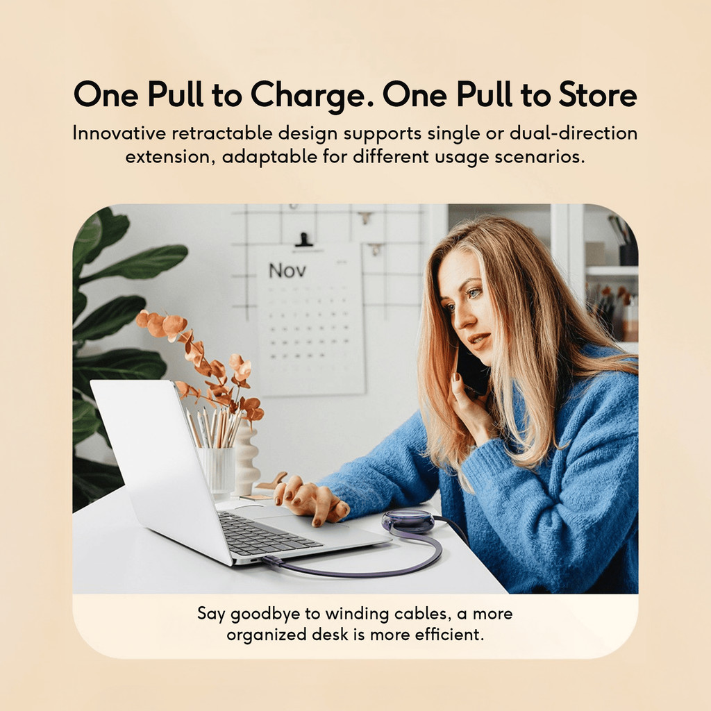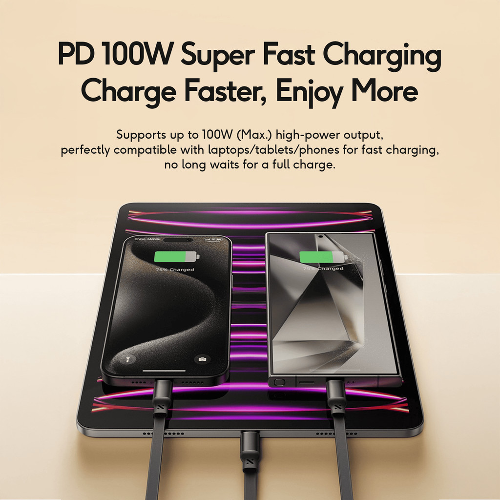 KiiP RCTC Kabel Data 100W Super Fast Charging Cable Type-C To Type-C Retractable