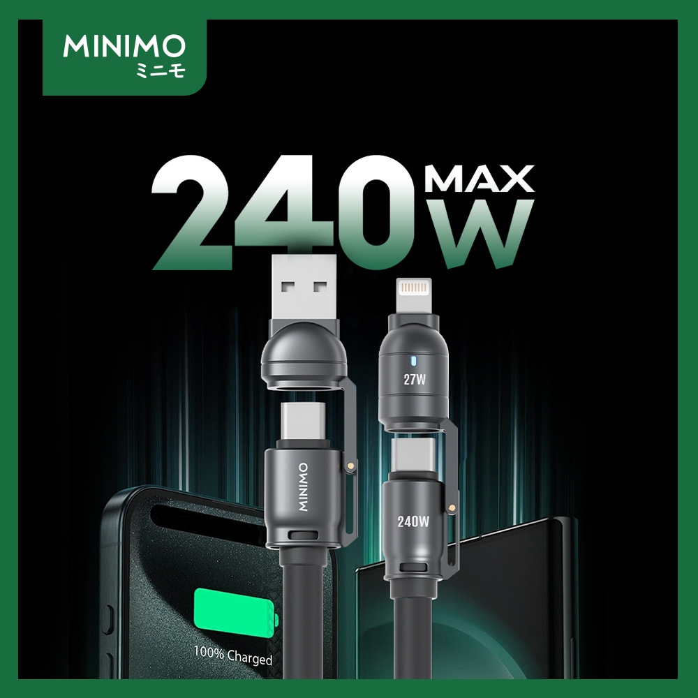 MInimo Data Cable 4 in 1 Fast Charging 240 W With Spiral Cable Tangle Free Data Kabel Anti Kusut Spiral DSF03