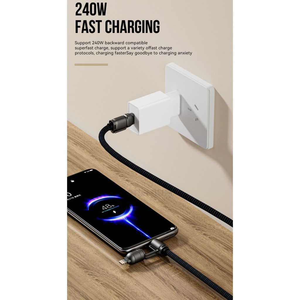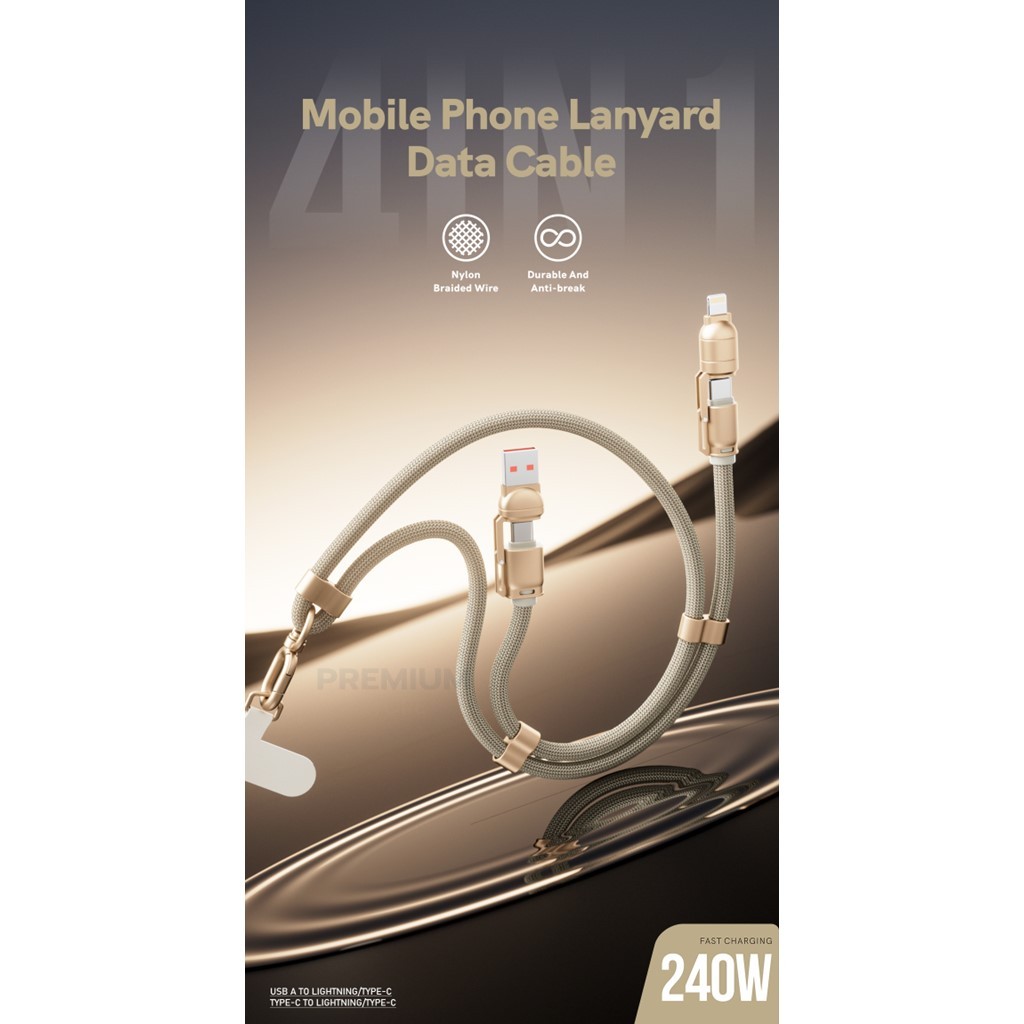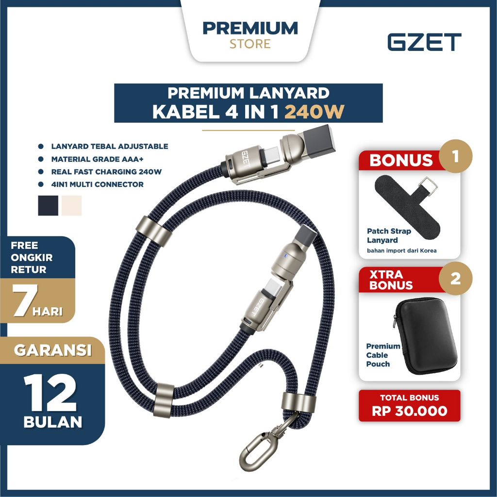 GZET Kabel Lanyard + Kabel Data Charging 4 in 1 240W Fast Charging Data Cable Braided 1.5 Meter