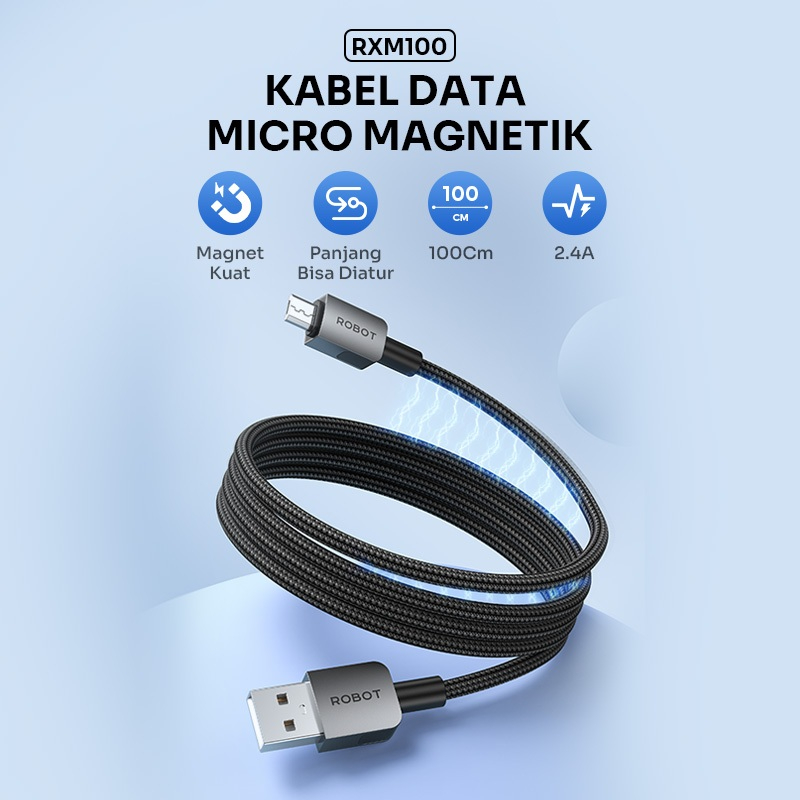 ROBOT Kabel Data Magnetik Fast Charging 65W Kabel Charger Type C Lightning Anti Kusut 1M RXM100/RXC100/RXL100/RXCC100/RXCL100 Original - Garansi ResmI 1 Tahun