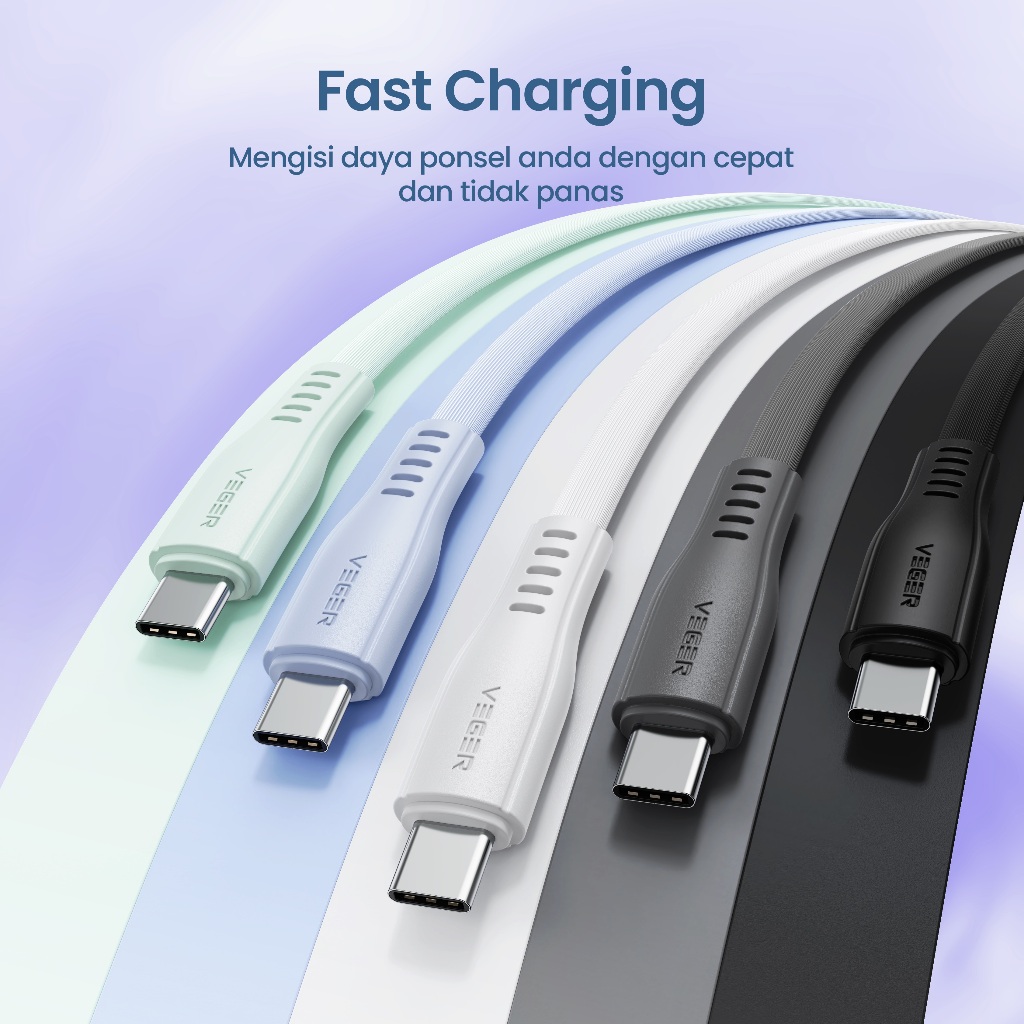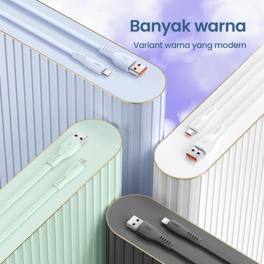 VEGER Kabel Data Cable V220 Micro USB , V230 Type C , V240 Lightning ( 1 Toples Isi 20 Pcs ) QC 3.0 Fast Charging