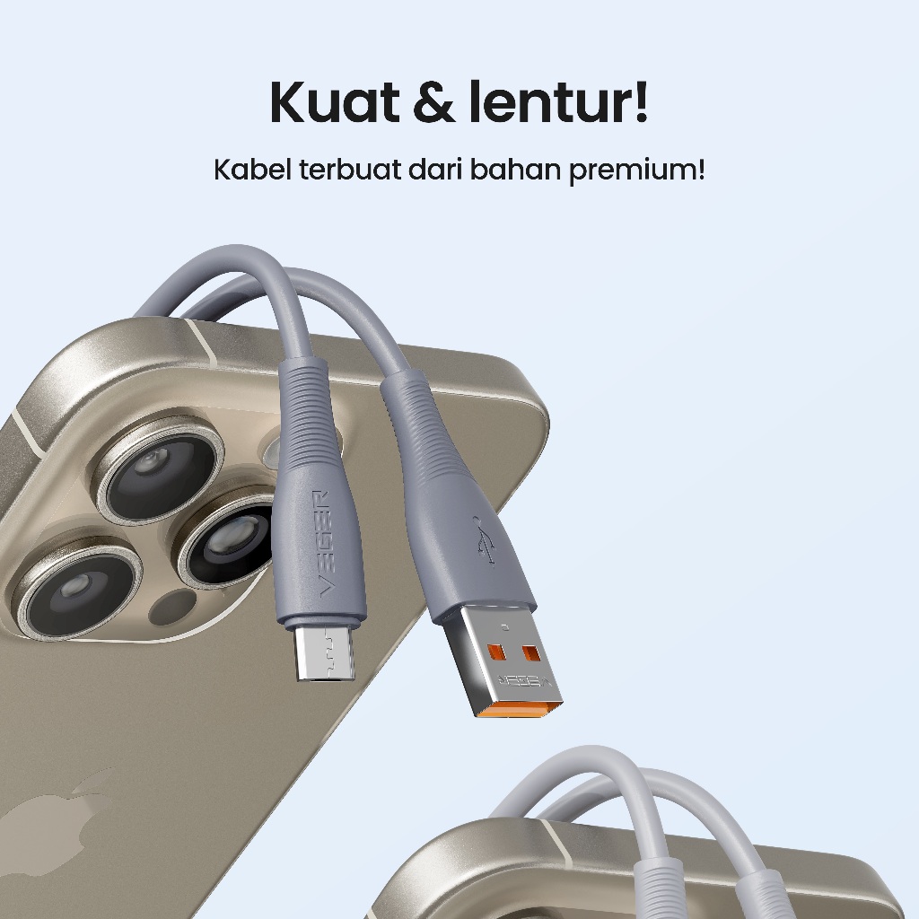 VEGER Kabel Data V250 MICRO USB V260 TYPE C V270 Lightning (1 Toples=15pcs) QC 3.0 Fast Charging