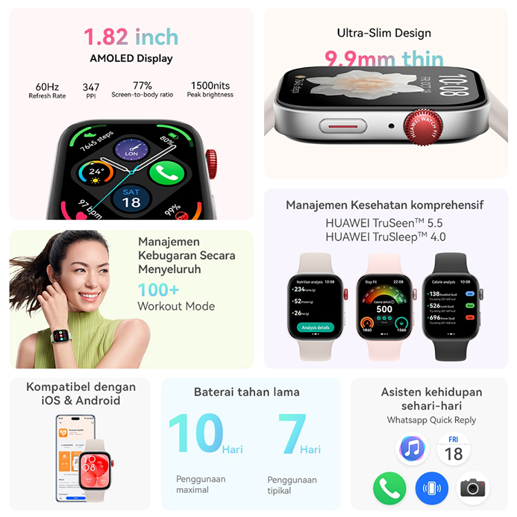 HUAWEI WATCH FIT 3 Smartwatch Ultra-Slim Bezel-Free Design 1.82" AMOLED Display Fitness Management 10-Days Battery Life