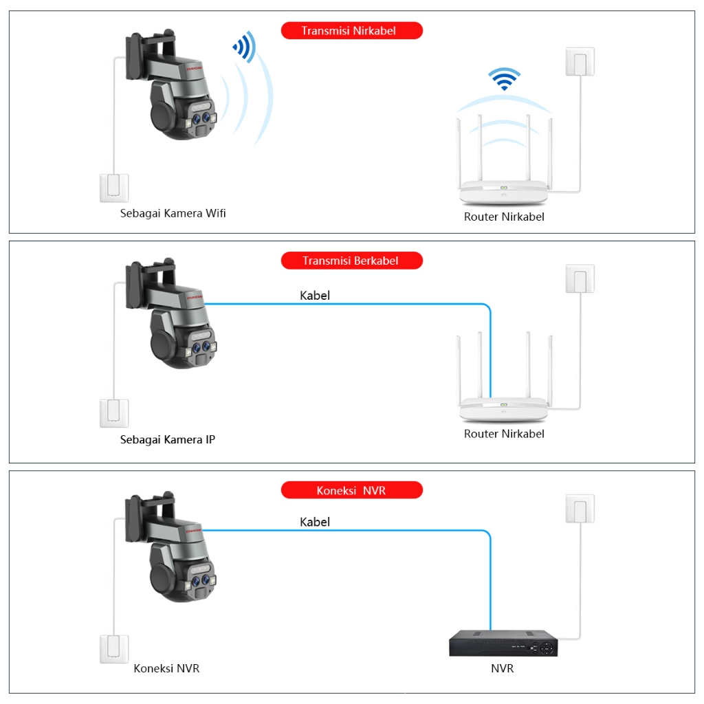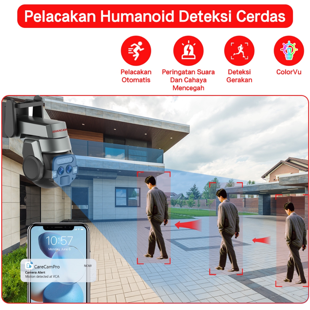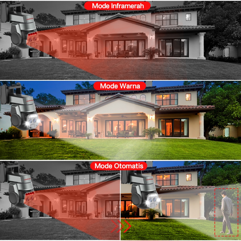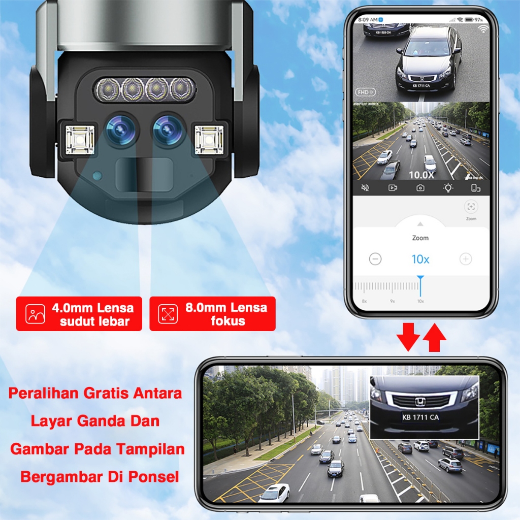 CCTV Wifi Outdoor Indoor 6MP IP Kamera Dual Lensa 360 PTZ CCTV Dual Kamera Outdoor Wifi HP Jarak Jauh