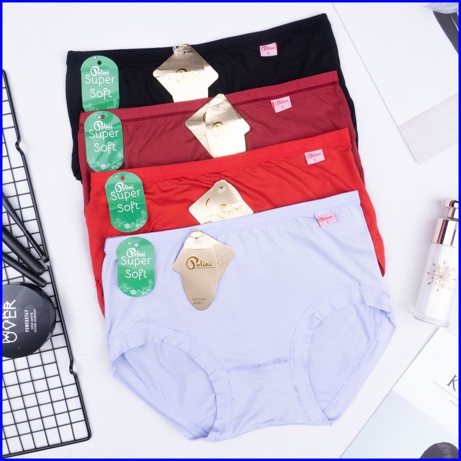 Polini Celana Dalam Wanita Katun Fit To M-xxl Polos Midwaist Basic Panties Cd 1233