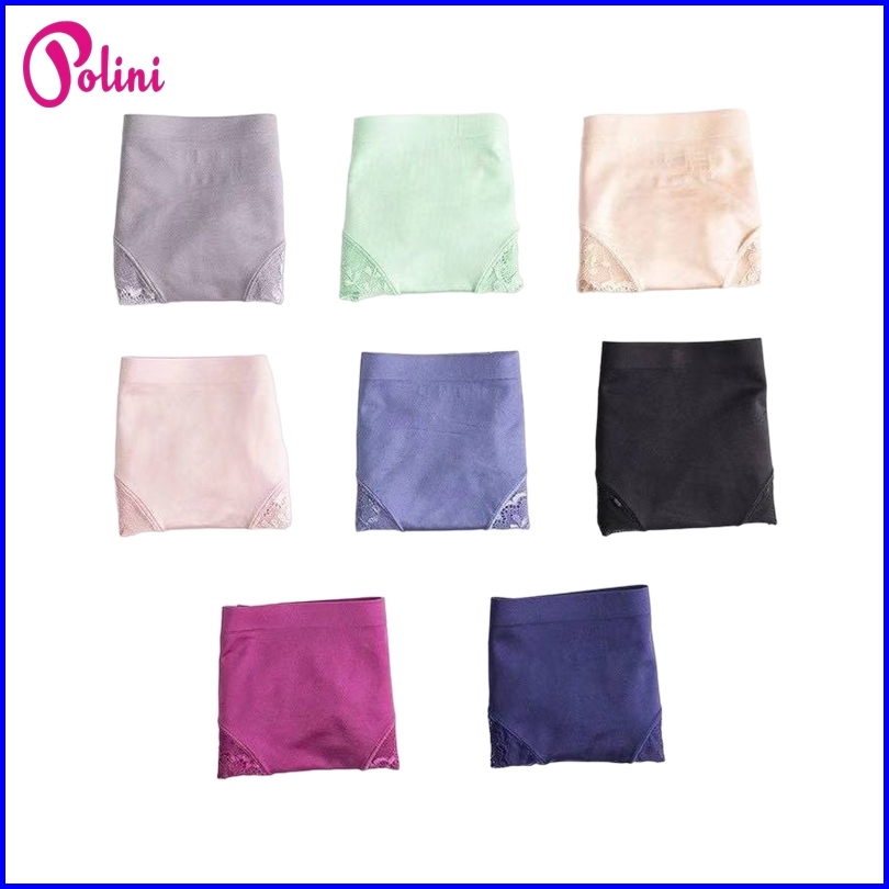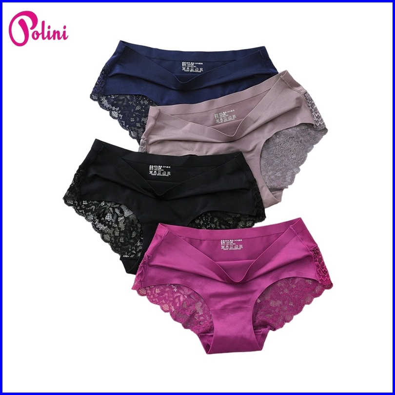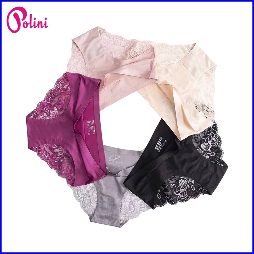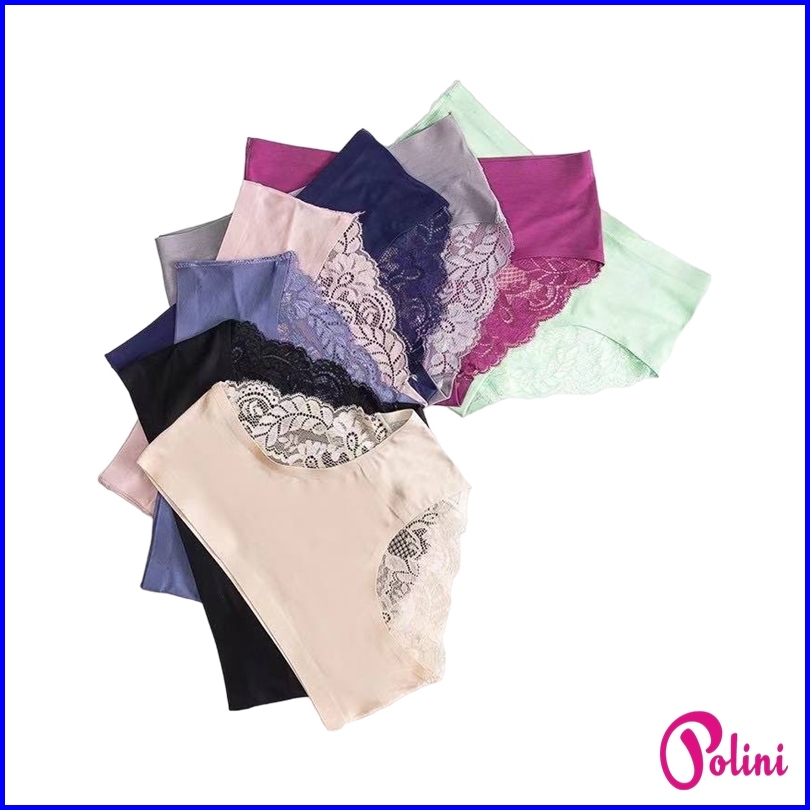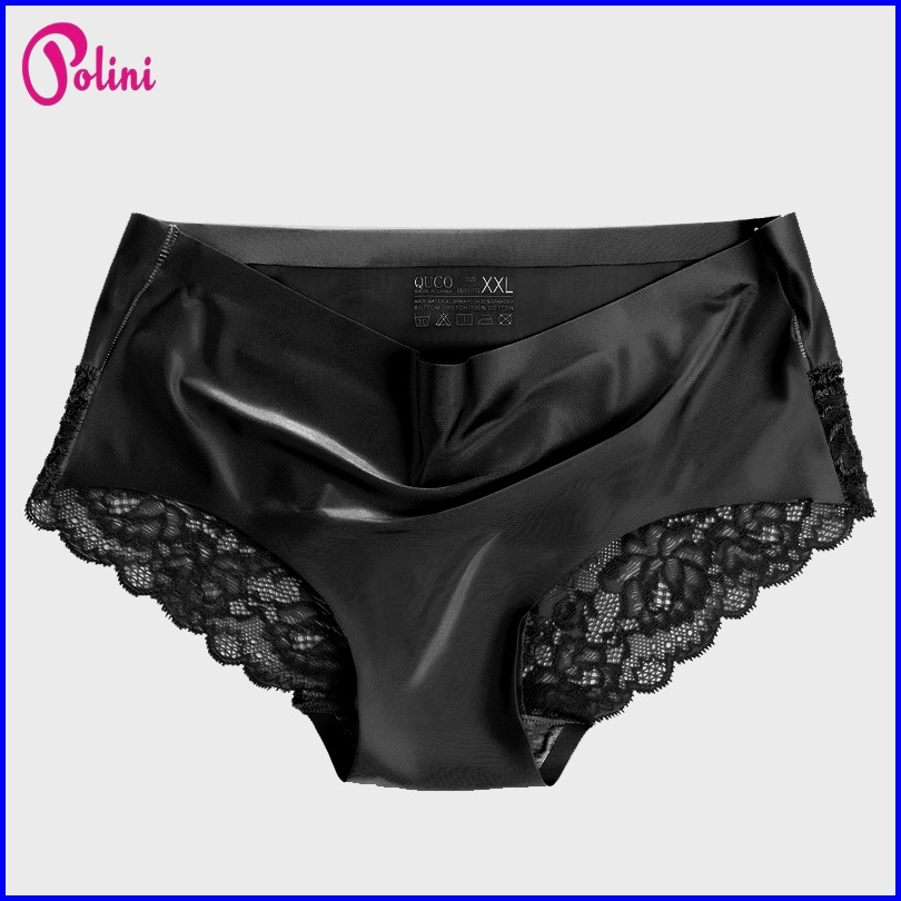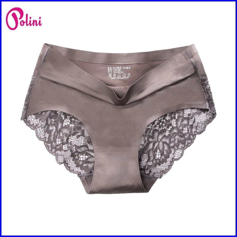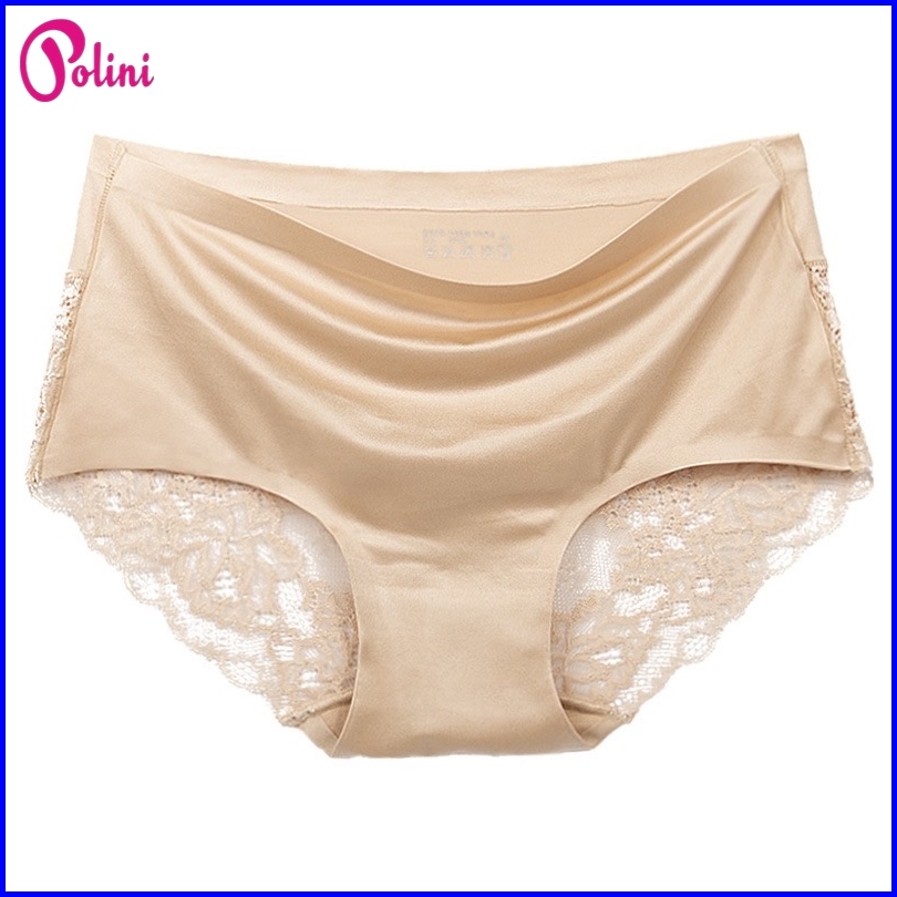 Polini Celana Dalam Brief Seamless Bahan Ice Silk Aksen Lace Sexy Untuk Wanita 818