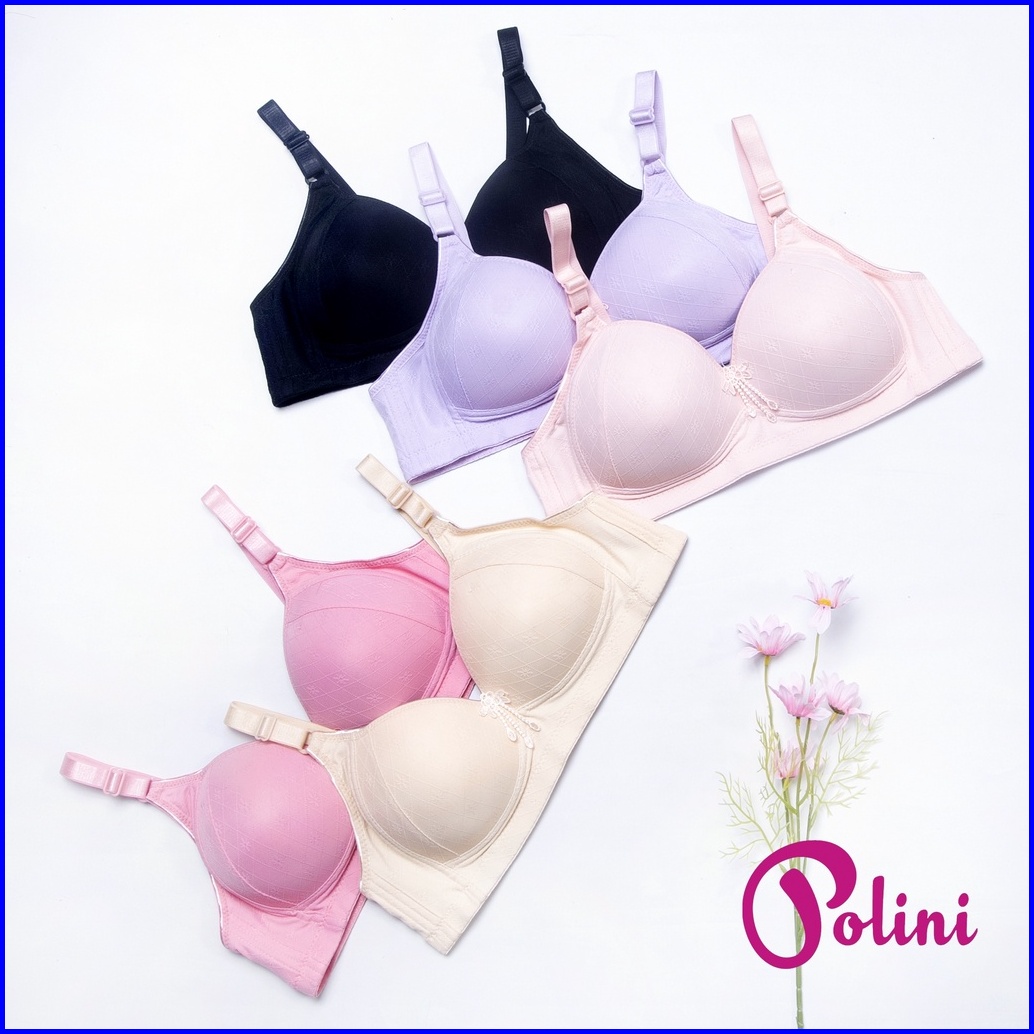 Polini Bra Wanita Tanpa Kawat Motif Garis Kait 3 G613