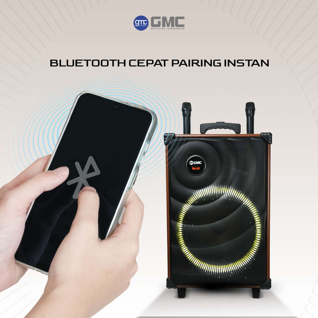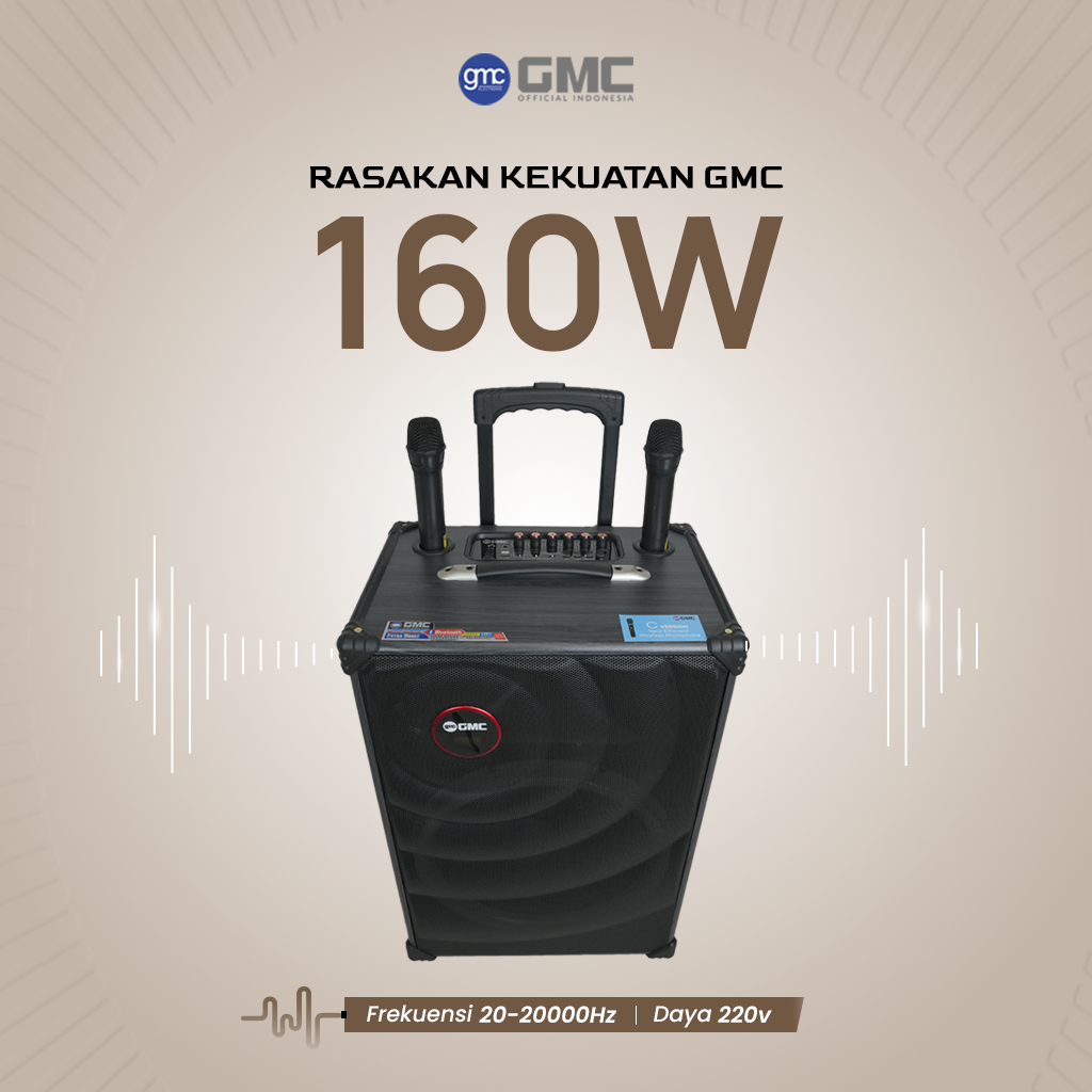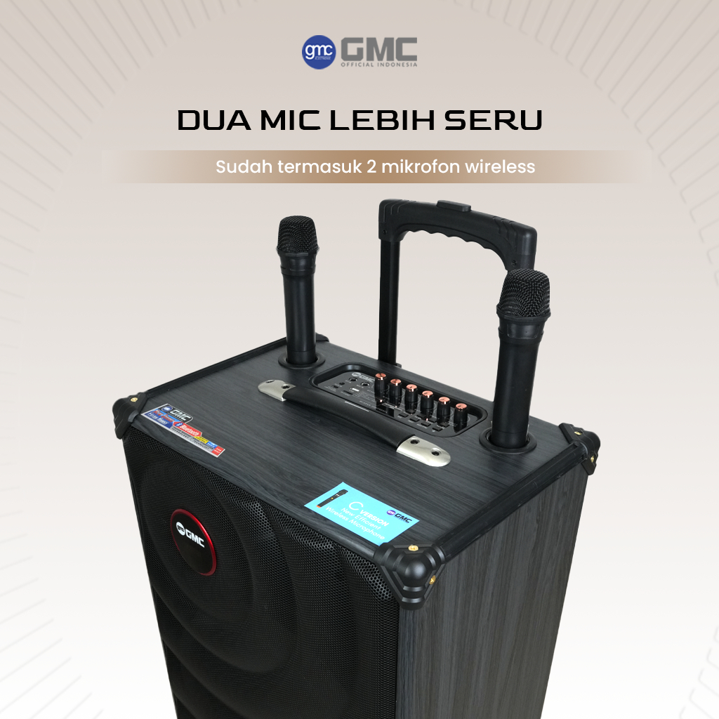 GMC Speaker 883I – Speaker Karaoke Bluetooth 15” – 160W, 2 Mic Wireless, Lampu LED, USB, AUX, TF Full Bass Terbaru 2025