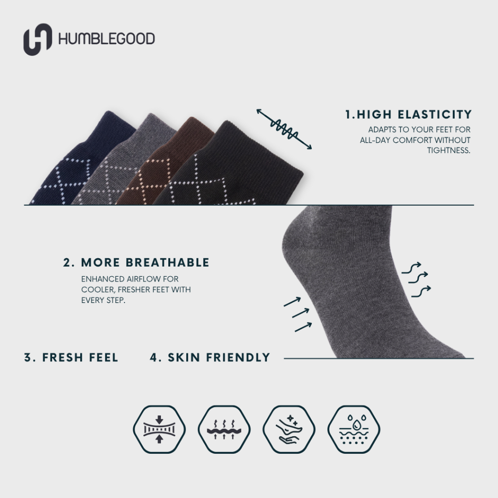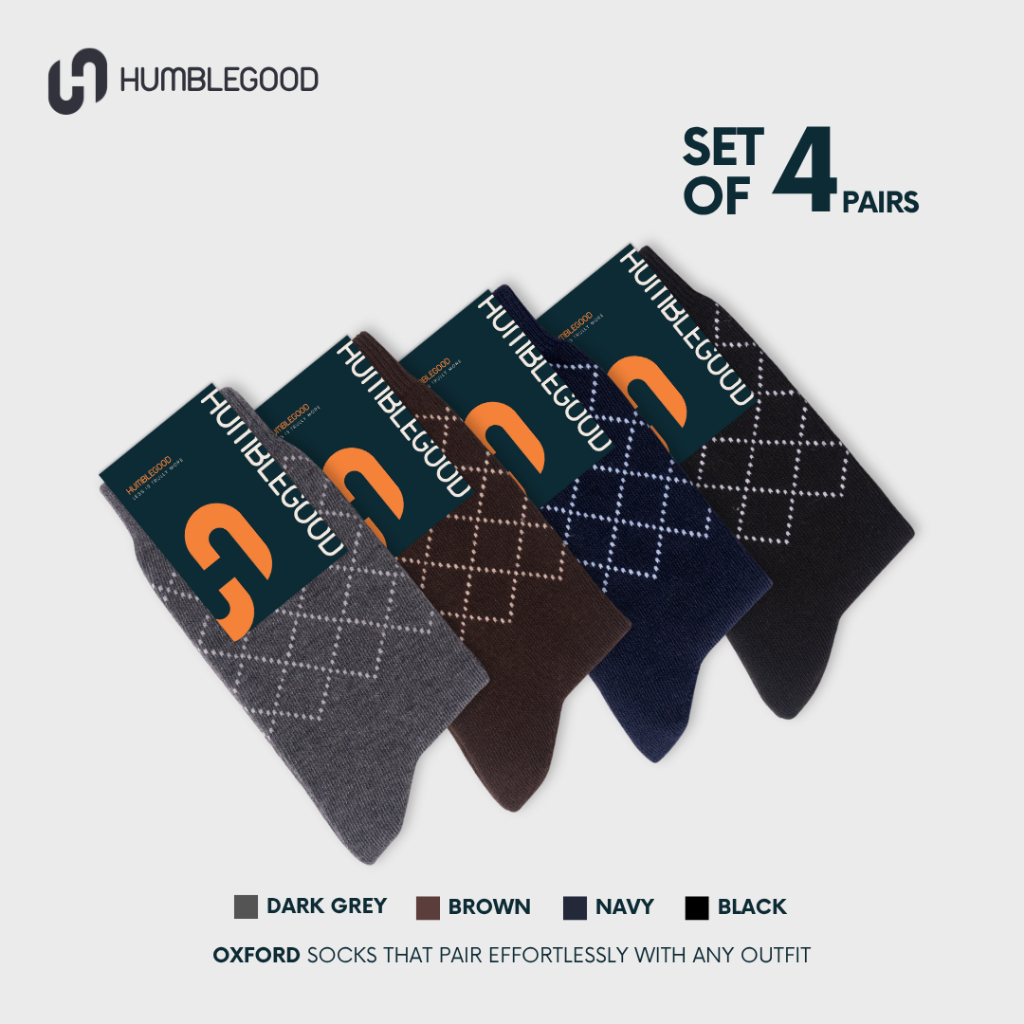 HUMBLEGOOD - Paket Bundling 4 Pasang Kaos Kaki Kantor Crew Oxford Series