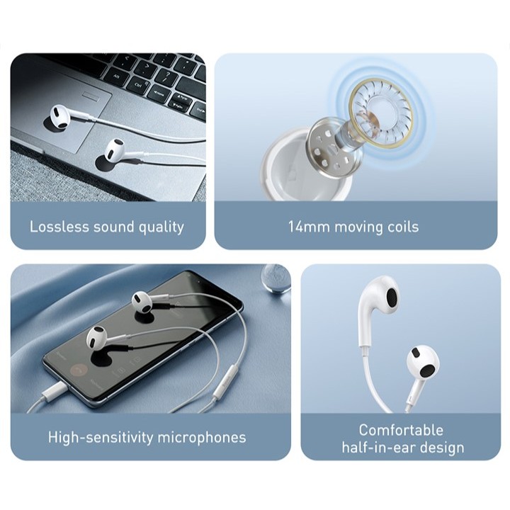 Baseus Headset Encok C17 Type-C Input Wired Earphone | Handsfree + Mic, Stereo & Bass Sound, HD Audio Calling