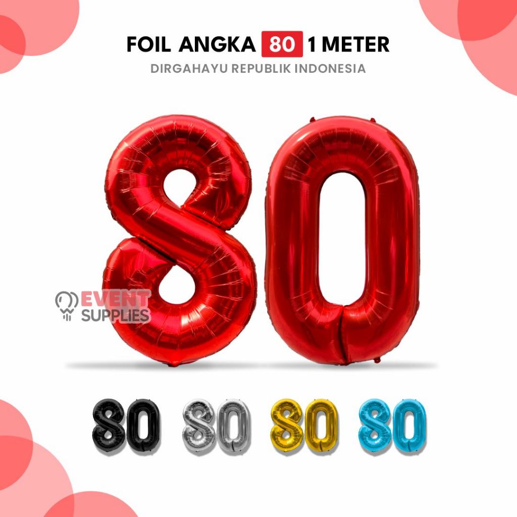 Balon Foil Angka Jumbo HUT RI Ke 80 Kemerdekaan / Balon Dirgahayu Ri 1 Meter 17 Agustusan