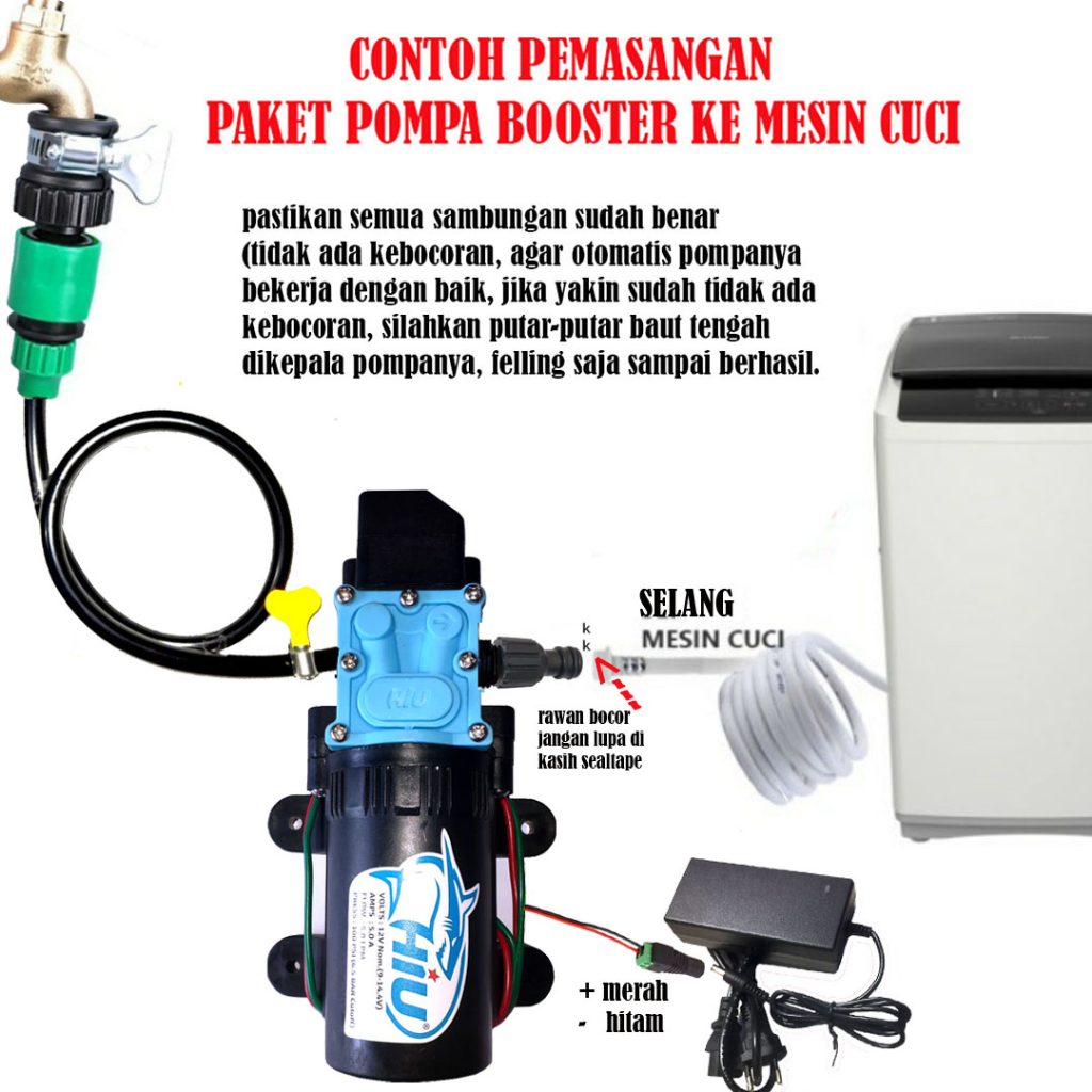 Paket Pompa Booster Air ke Mesin Cuci Bertekanan Tinggi 180PSI - Pompa dc Akana 5Lpm Otomatis On/Off