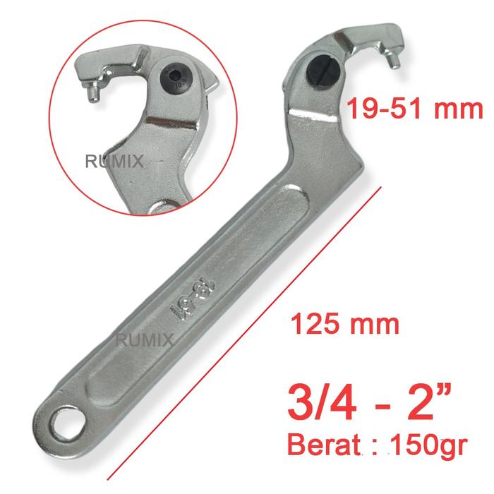 Hook Wrench Kunci Komstir Motor 45-52Mm 3/4-2 Inch Konci Kait Pass - 3/4-2Inch