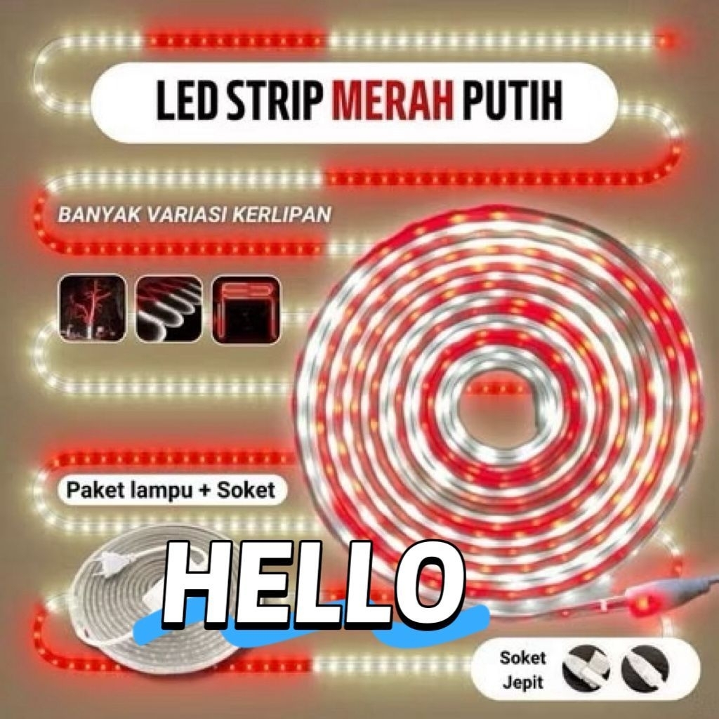 Lampu Strip Outdoor LED 2835 Merah-Putih 7 Meter + Adaptor 220V / Lampu Hias Anti Air LED 3528 Strip