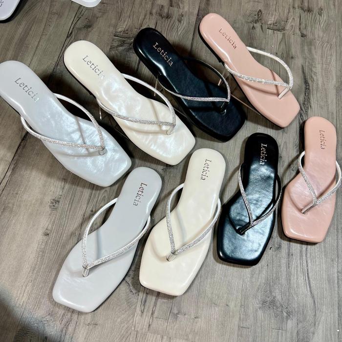 PROMO TERBATAS LEONYGAMORA SANDAL JEPIT FLAT WANITA CEWEK KEKINIAN KASUALHITAM 36