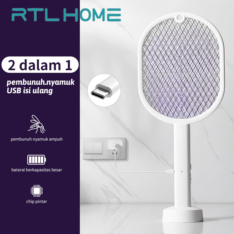 [Star]RTL Raket Nyamuk Elektrik Cas Ori Tahan Lama Murah Awet Charger Usb 2 in1 Raket Nyamuk Standing