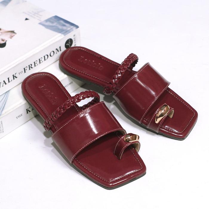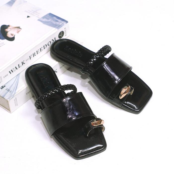 PROMO TERBATAS LEONYSANDY SANDAL FLAT WANITASENDAL TEPLEK CEWE TALI KEPANGHITAM 36