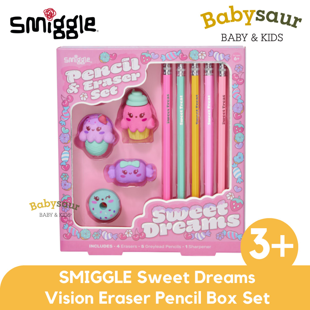 SMIGGLE 100% Original Sweet Dreams Vision Eraser Pencil Box Set Perlengkapan Sekolah Alat Tulis Anak Perempuan