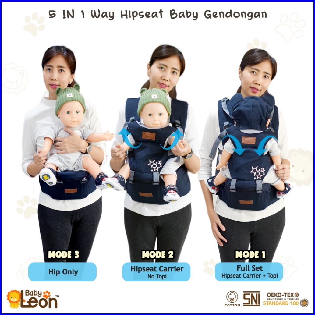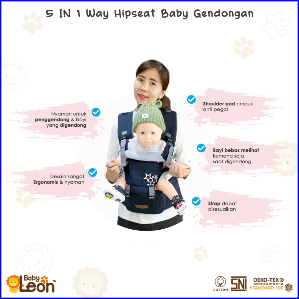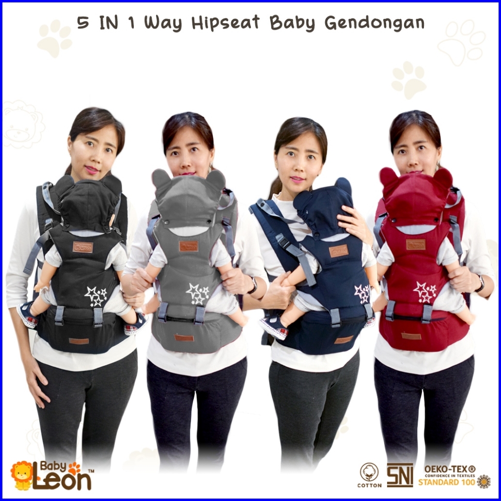 Babyleon Gendongan Bayi 0-3th 5in1 Way Gendongan Hipseat Bayi Pelindung Kepala By-6080 Gendongan Bayi Model Terbaru Gend