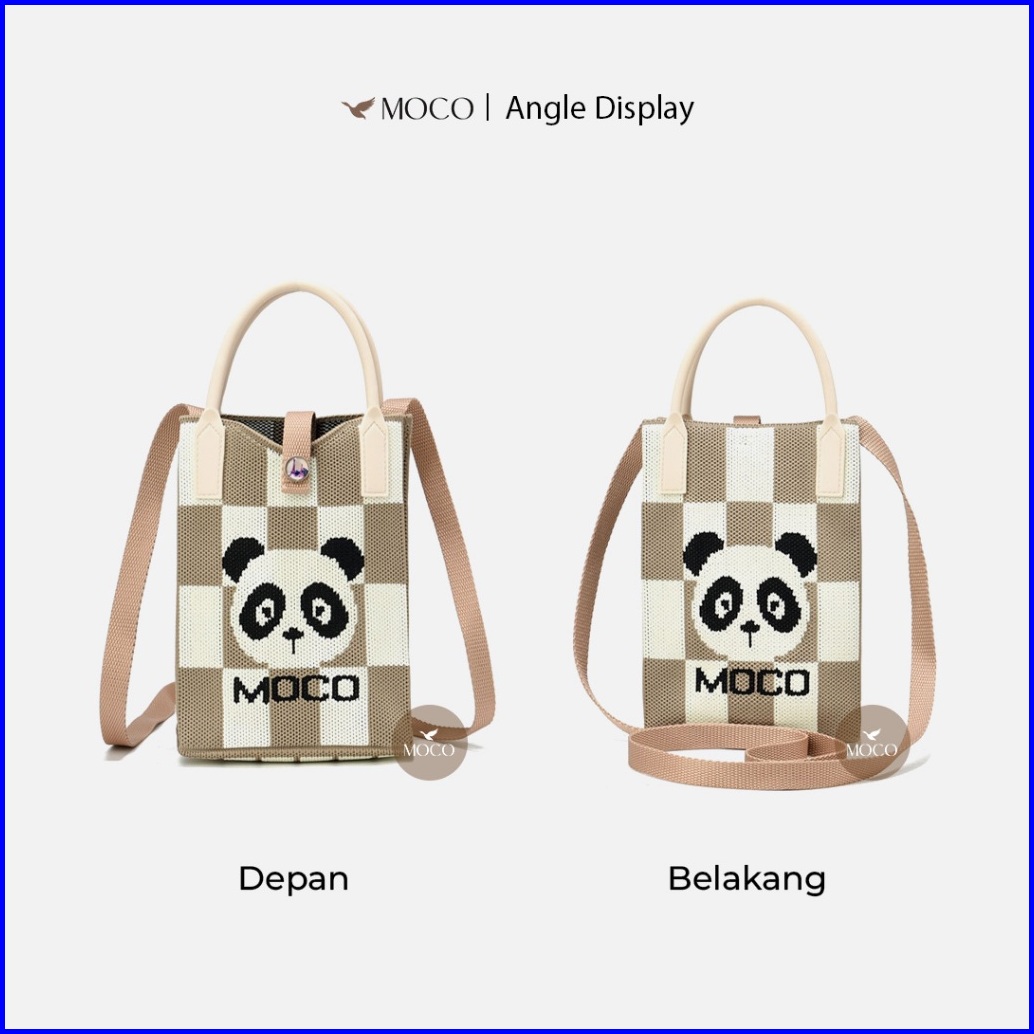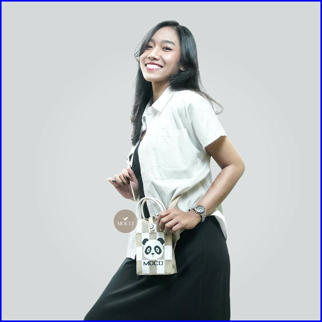 Furry Friends Collectionmoco Fashion Tas Hp Kecil Wanita Sling Bag Panda Rajut Kotak-kotak Mhx-01