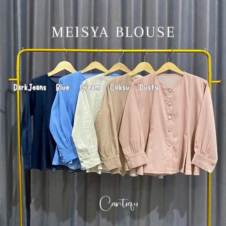 Cantiqu Blouse Wanita Import Kemeja Slim Fit Meisya Atasan Polos Full Kancing Elegant