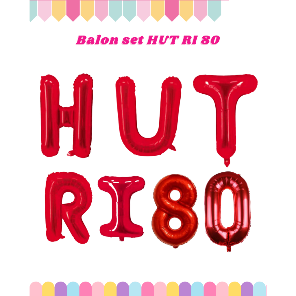 Balon Foil Set HUT RI 80 Mini isi 7pcs Dirgahayu Merah Putih Kemerdekaan hiasan 17 agustus