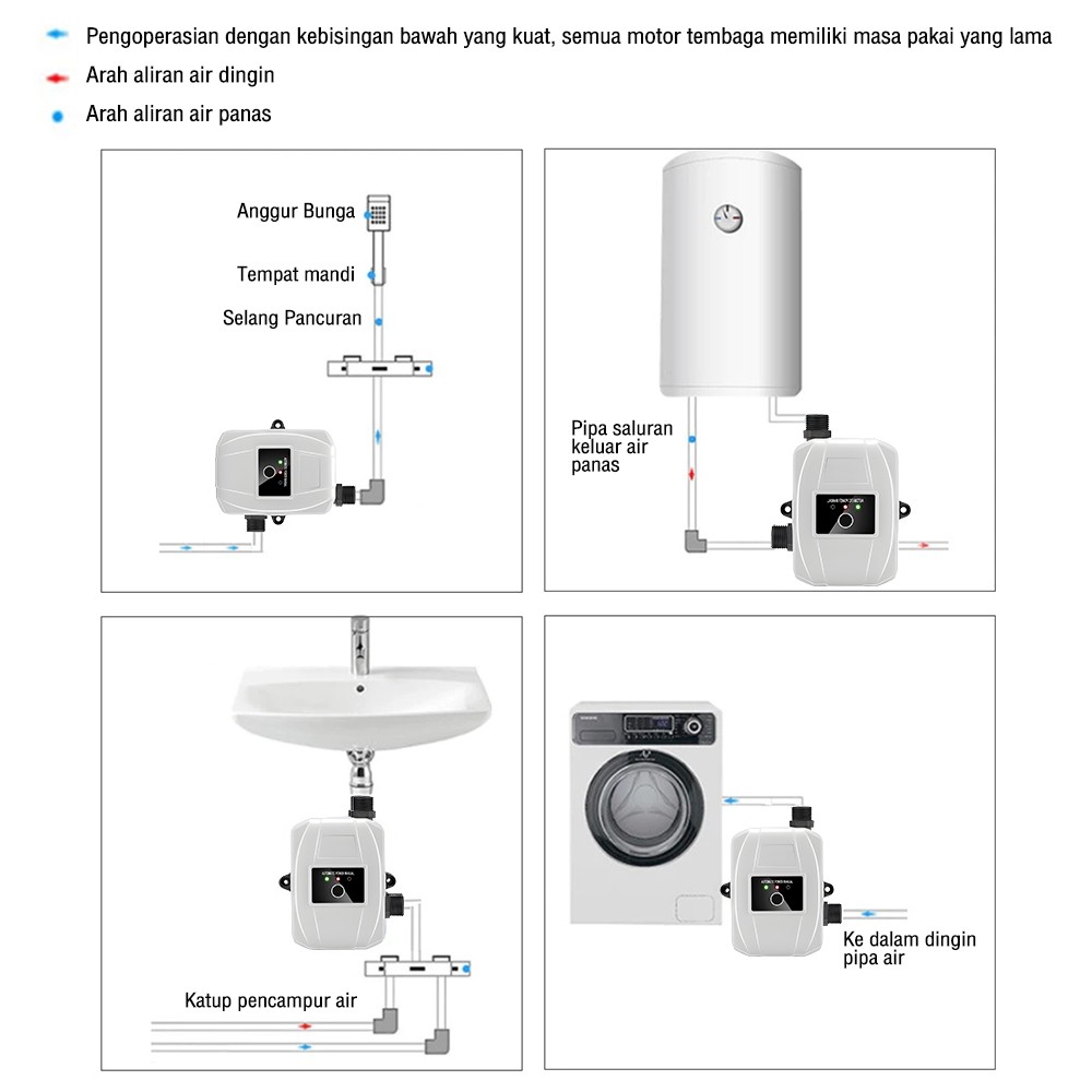 Moketa 250W Pompa Booster Pendorong Air Otomatis 45L/min untuk Shower Water Heater dan Mesin Pendorong Air