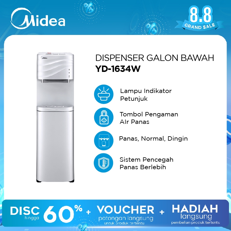 [Mall]Midea Dispenser Air Galon Bawah hemat daya - Model YD-1634W ( Bottom Loading ) Hot & Cold