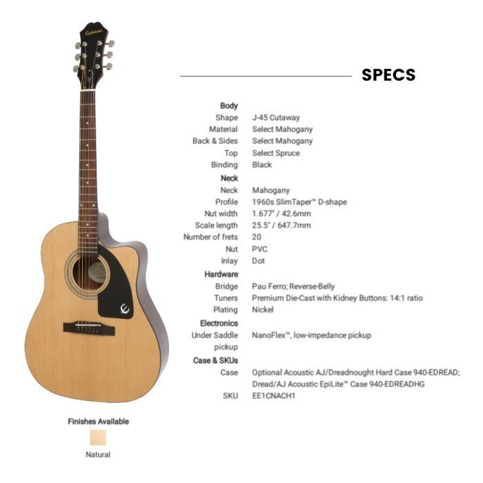 Epiphone J-15 EC Top Spruce Gitar Akustik Elektrik - Natural