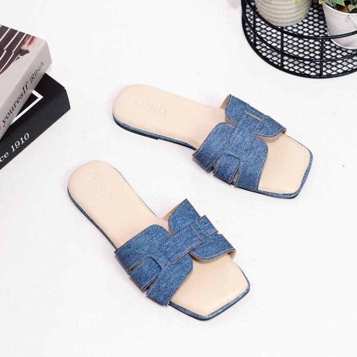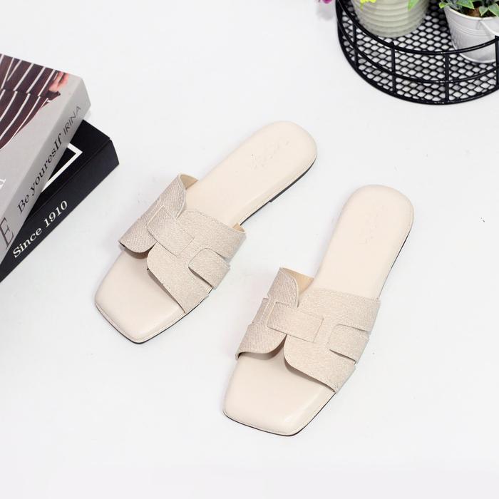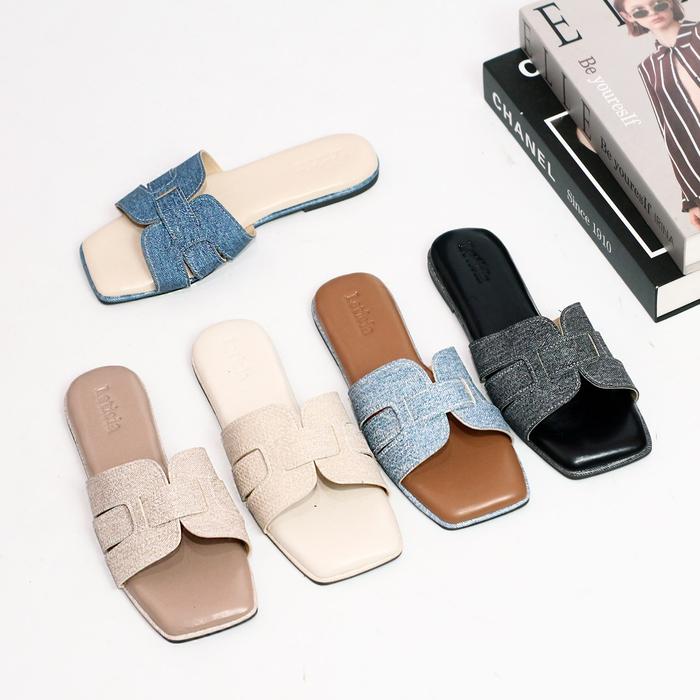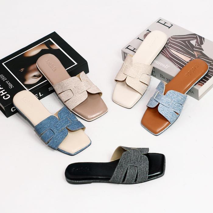 PROMO TERBATAS LEONY DIVA SANDAL FLAT WANITASENDAL SELOP PEREMPUAN HITAM KASUAL CEWEK KARETHITAM 36